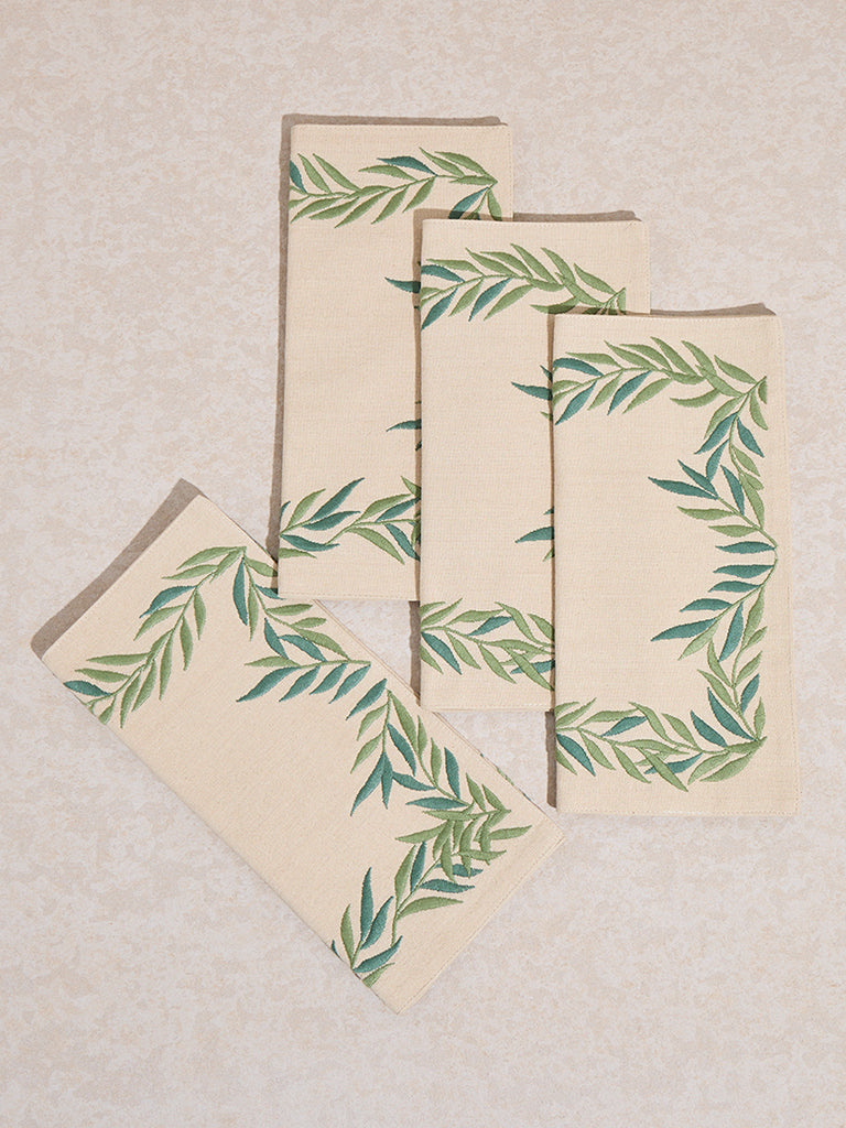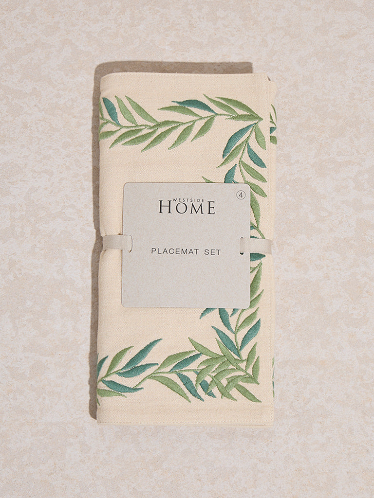 Elevate your dining experience with this set of four placemats from Westside Home. These placemats feature intricate green leaf embroidery that adds a natural. refreshing touch to your table setting. Made from quality materials. they protect your surfaces while enhancing the visual appeal of your meals. Whether for everyday use or special occasions. these placemats bring a touch of nature indoors. creating a welcoming and stylish dining environment.