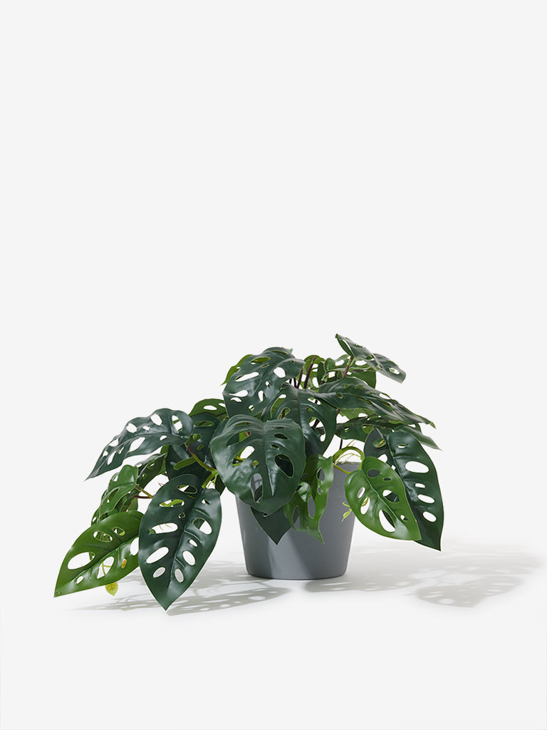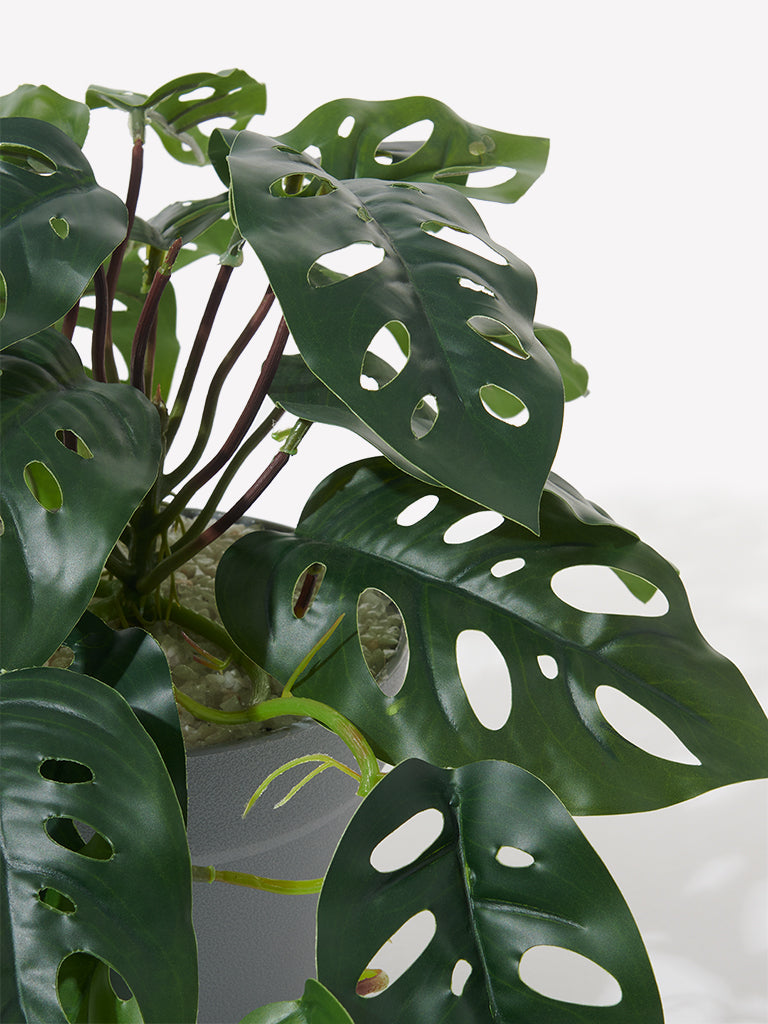 Create a tropical vibe indoors with this green monstera plant from Westside Home. This artificial plant showcases largely-shaped leaves. while the stem and pot holds it together to give your interiors a nature-inspired boost.