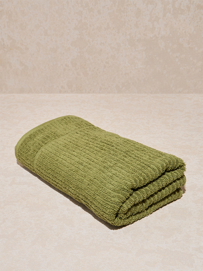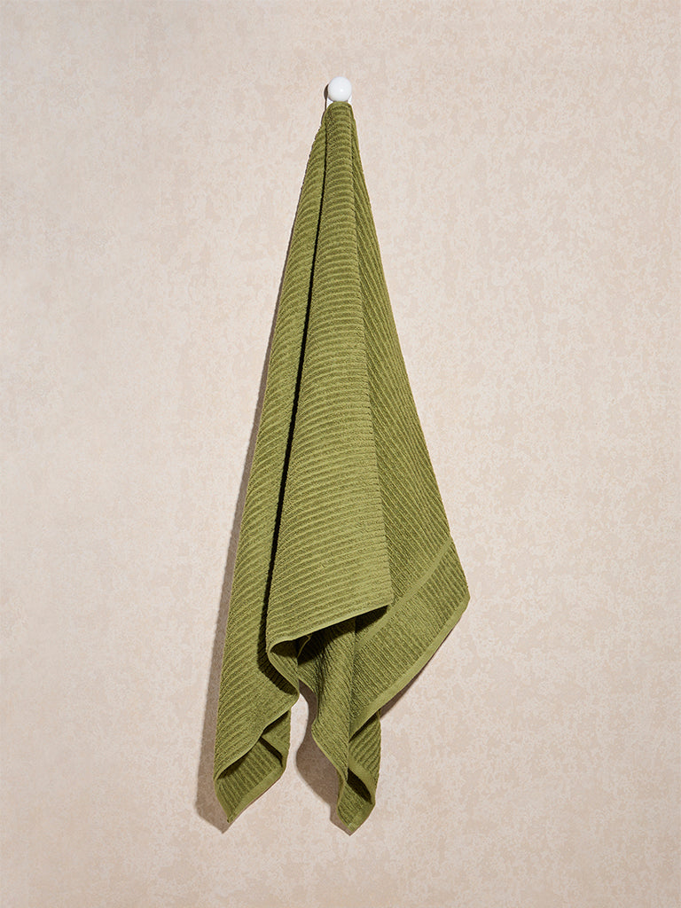 Wrap yourself in understated luxury with this green bath towel from Westside Home. Woven from plush. absorbent fabric with tonal self-stripes. it’s soft on the skin and effortlessly stylish. The earthy green tone adds a calm. grounded feel to your bath space. while its generous size makes it perfect for post-shower lounging. A daily essential that doesn’t scream for attention??but leaves a lasting impression.