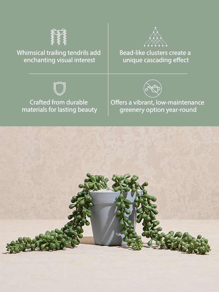 Add a touch of whimsy and life to your space with this artificial plant from Westside Home. The plant’s long. trailing tendrils adorned with bead-like clusters create an enchanting. cascading effect that brings visual interest to any room. Perfect for hanging planters or stylish vases. this artificial plant is a low-maintenance way to introduce texture and greenery into your home. creating a vibrant. natural focal point in any corner of your living space