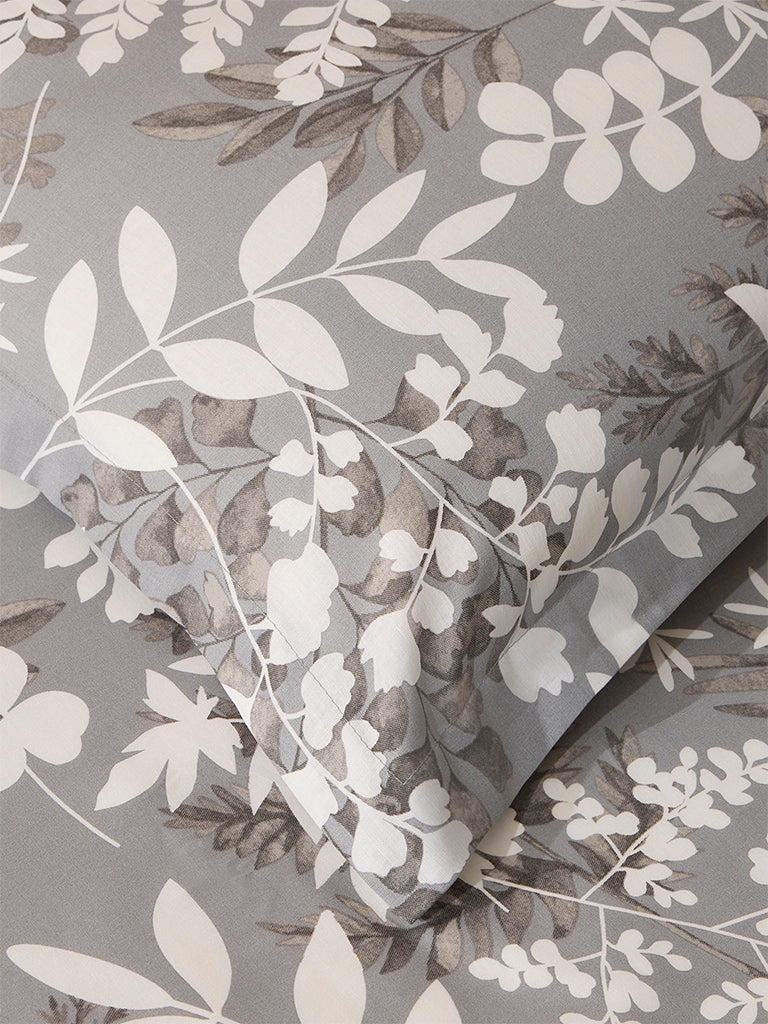 Westside Home Grey Foliage Printed King Bed Flat Sheet and Pillowcase Set
