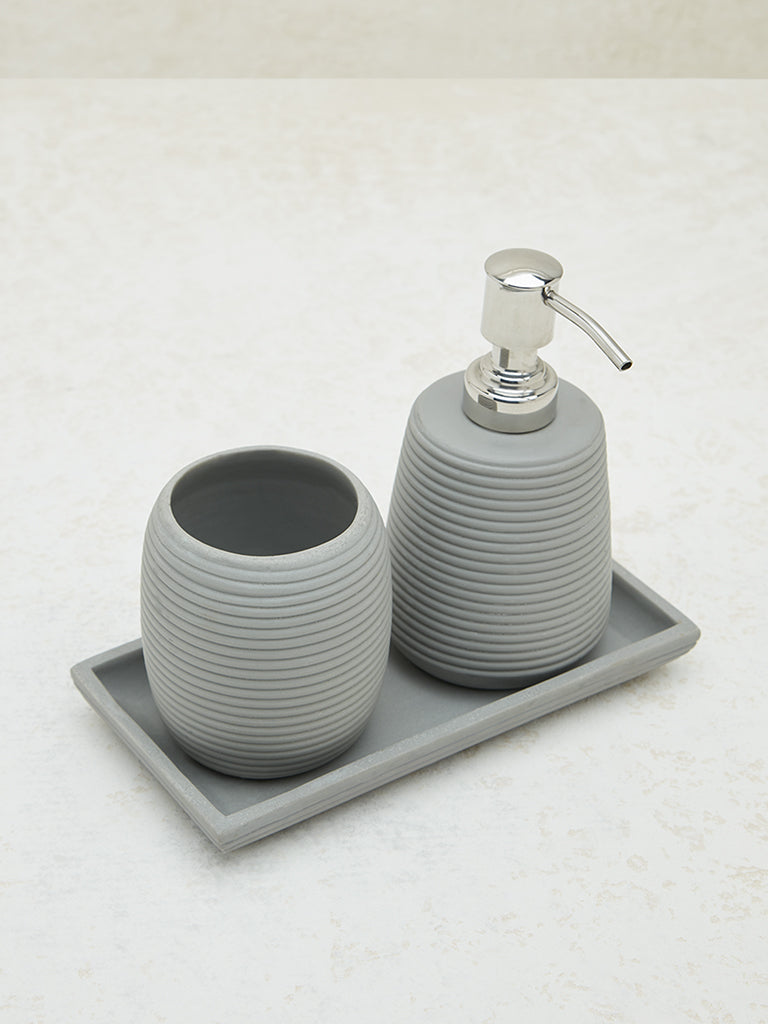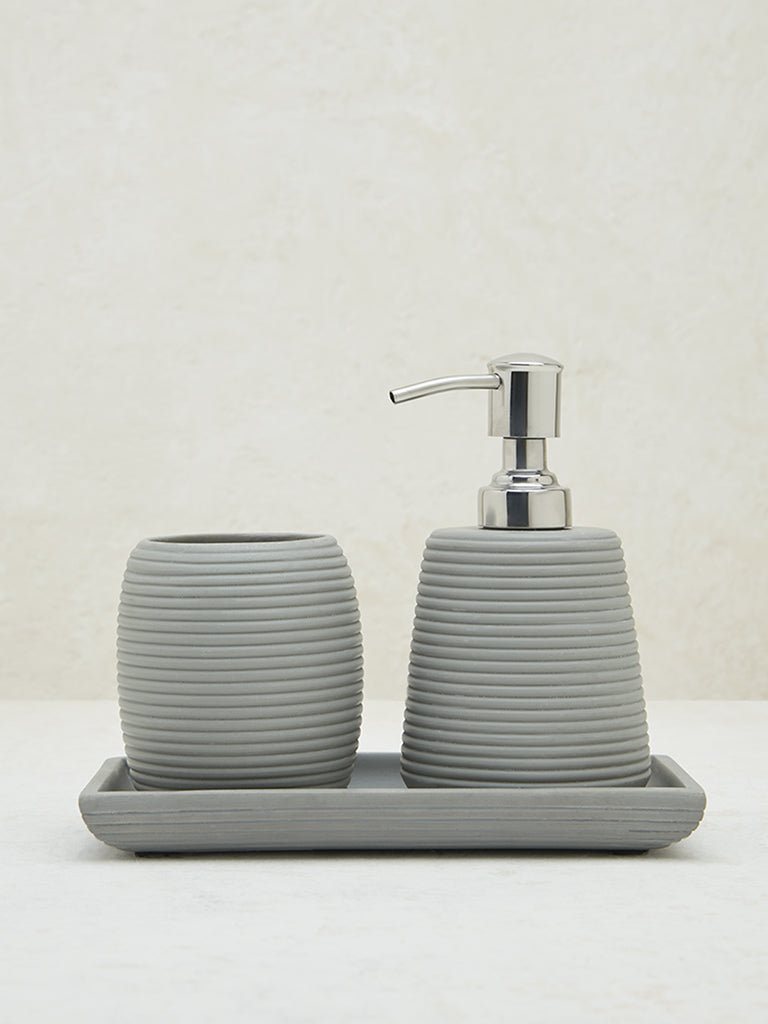Westside Home Grey Ribbed Textured Bathroom Accessory Set