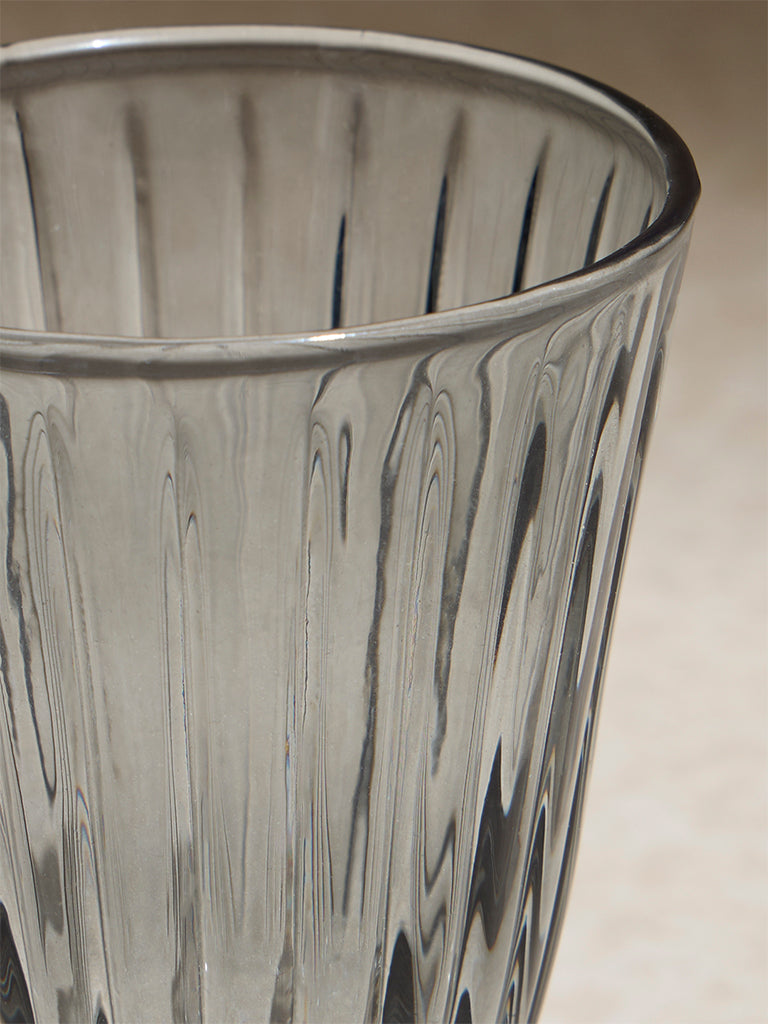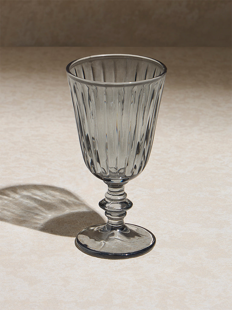 Reimagine your wine ritual with this grey wine glass from Westside Home??an artful fusion of form and function. The delicate ridges create a tactile experience. enhancing both grip and aesthetic appeal. Crafted from smoky grey glass. it lends a moody sophistication to your tablescape. whether for casual evenings or celebratory toasts. The gently curved bowl allows your favourite reds and whites to breathe. while the sleek stem maintains a classic silhouette. A perfect blend of modern minimalism and vintage charm. designed for those who appreciate fine details.