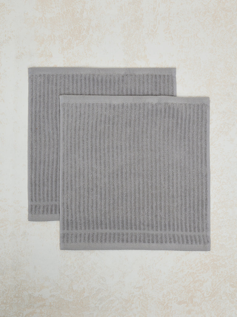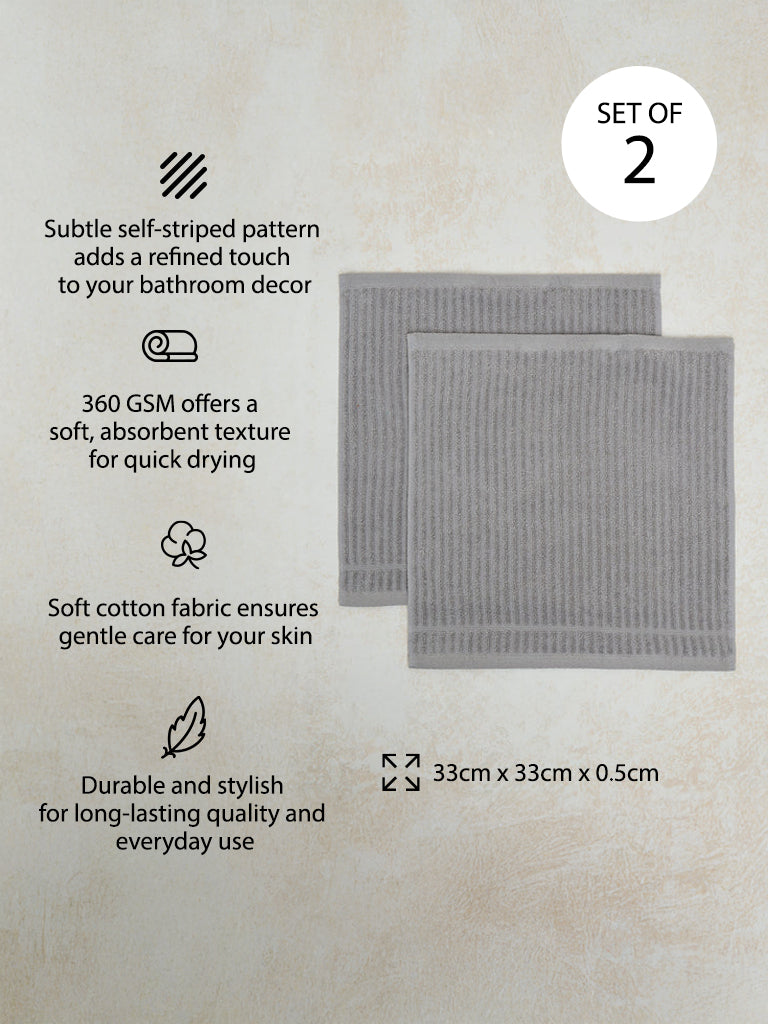 Westside Home Grey Self-Striped Face Towel (Set of 2)