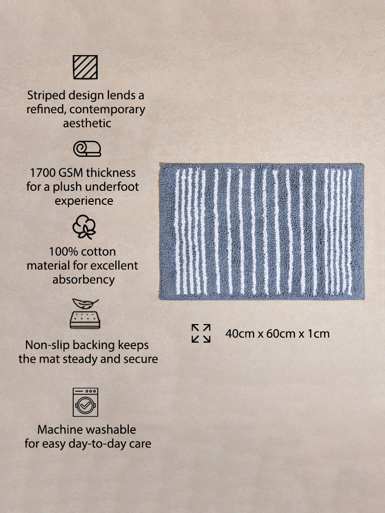 Westside Home Grey Stripe Printed Bath Mat