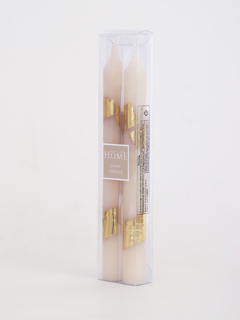 Westside Home Ivory Gold Foiling Taper Candle (Set of 2)