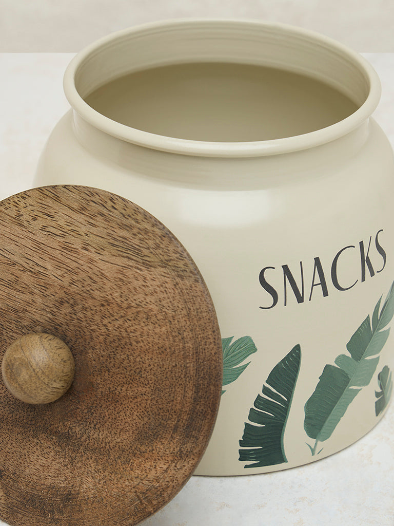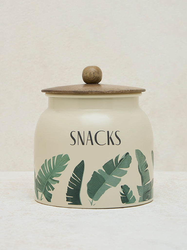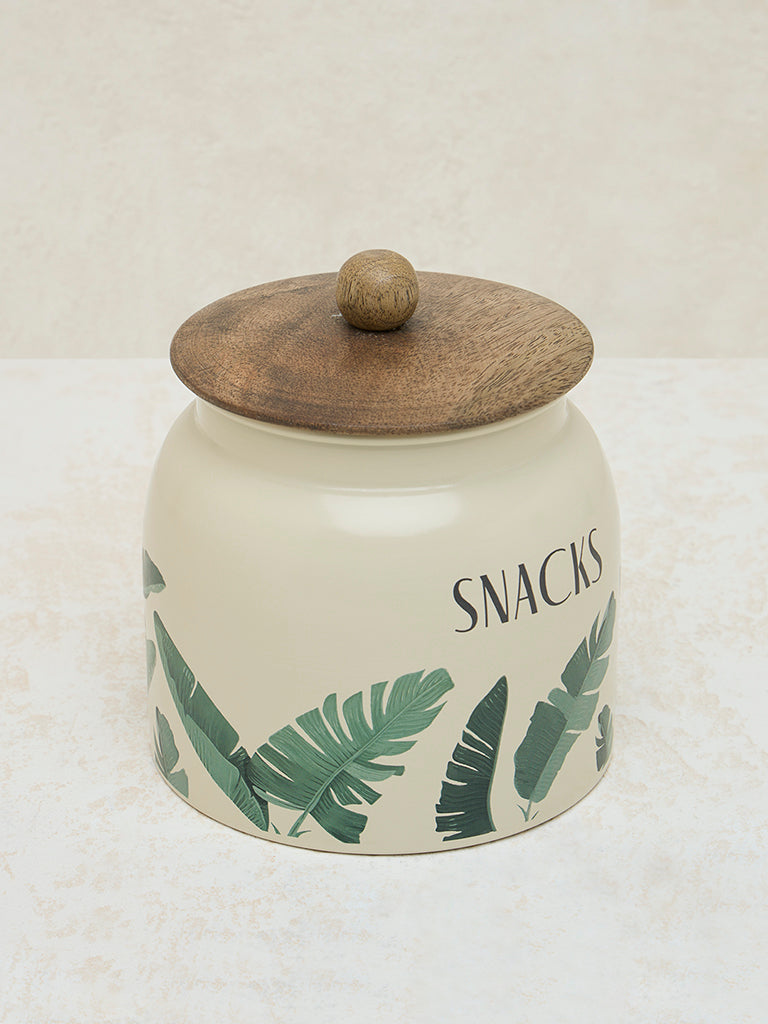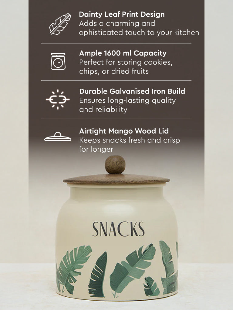 Westside Home Ivory Leaf Printed Snacks Jar