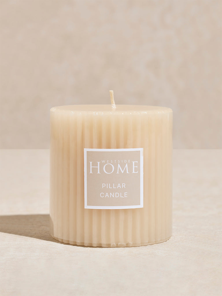 Westside Home Ivory Ribbed Textured Pillar Candle