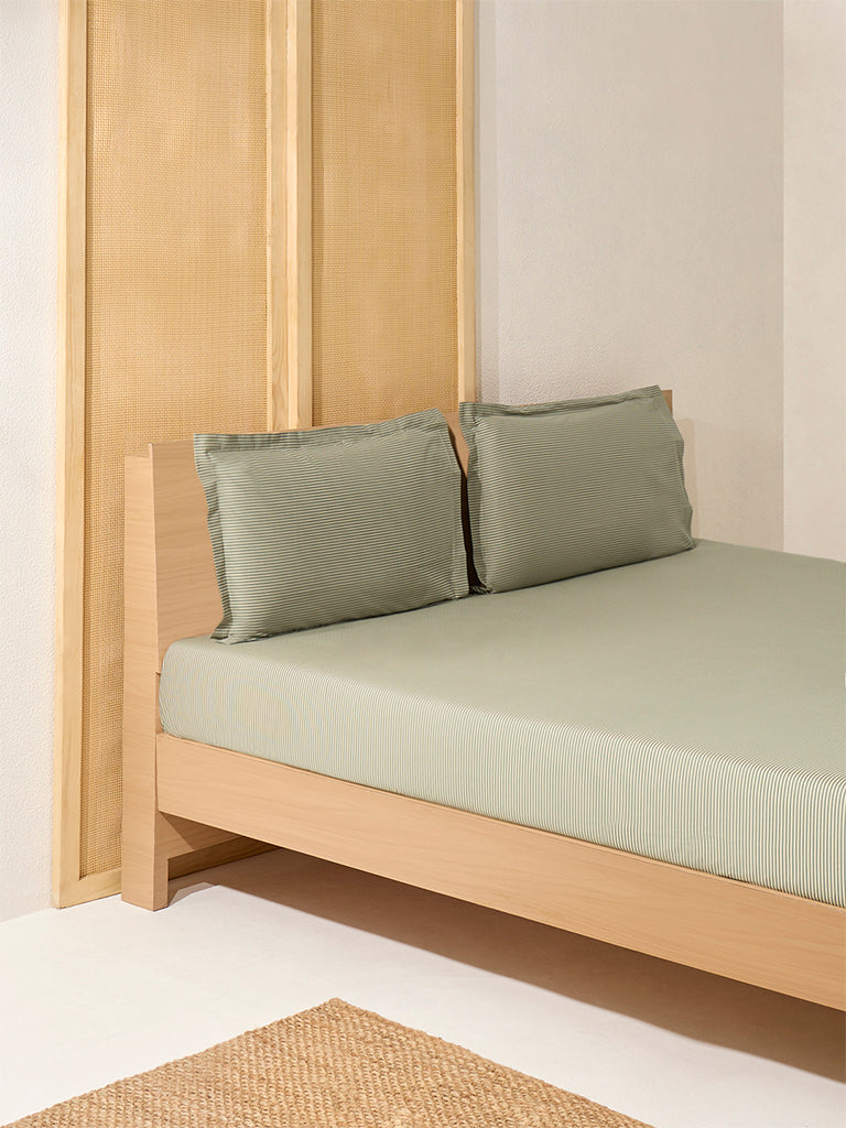 Classic and clean. this khaki bed flat sheet and pillowcase set from Westside Home brings a sense of quiet order to your bedroom. The soft. earthy tones complement a wide range of interior palettes. while the subtle stripe pattern adds a tailored finish without overpowering the space. Designed to drape gracefully over your queen bed. the set includes a matching pillowcase that ties the look together with effortless ease.
