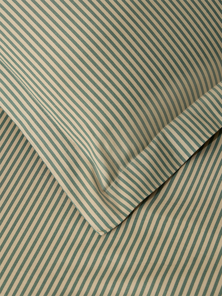 Westside Home Khaki Striped Queen Bed Flat Sheet and Pillowcase Set