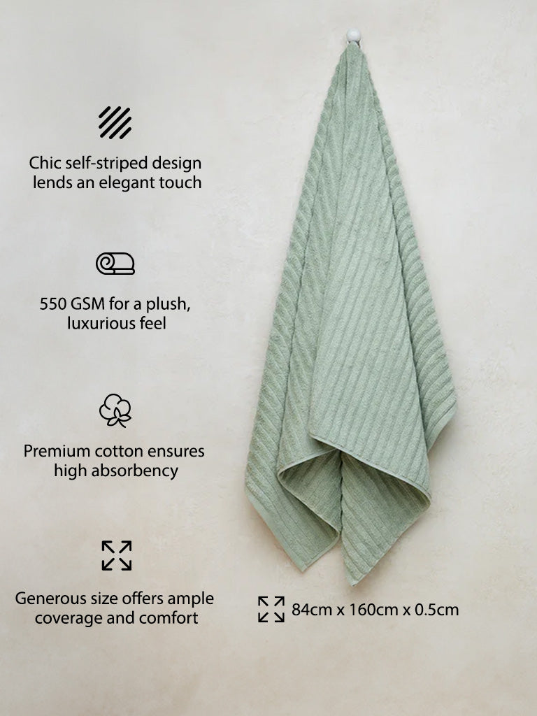 Westside Home Light Sage Self-Striped Luxe Bath Towel