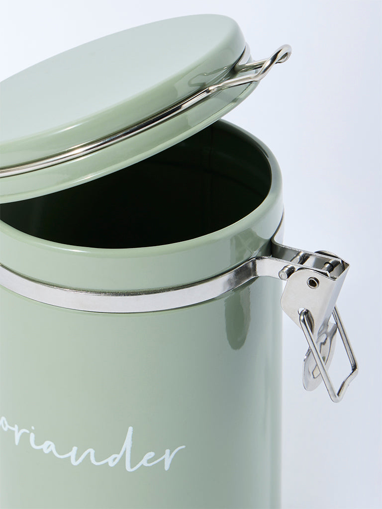 Freshen up your kitchen storage with this mint coriander jar from Westside Home. Crafted in a soft mint hue with a bold label. it’s fitted with a secure metal clasp closure to lock in freshness. Ideal for storing everyday spices. snacks. or dry goods. it brings order with style. Functional yet decorative. this jar is perfect for keeping countertops tidy while lending your kitchen a contemporary. coordinated look.