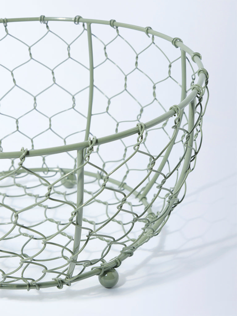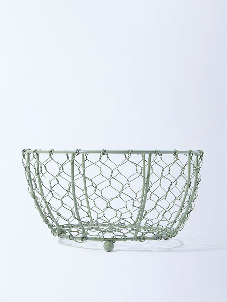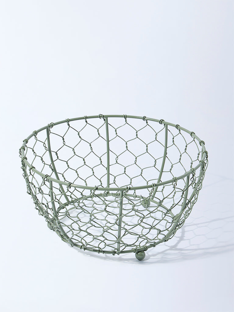 This metal fruit basket from Westside Home combines everyday function with considered design. The open hexagonal wire frame allows for airflow. helping to keep fruits fresh. Finished in a soft mint tone. it adds a subtle hint of colour to kitchen counters or dining tables. Rounded feet provide stability. while the lightweight build makes it easy to move or reposition. A versatile storage piece that balances utility with understated style.