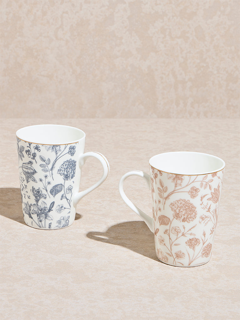 Westside Home Multicolour Botanical Printed Mugs (Set of 2)