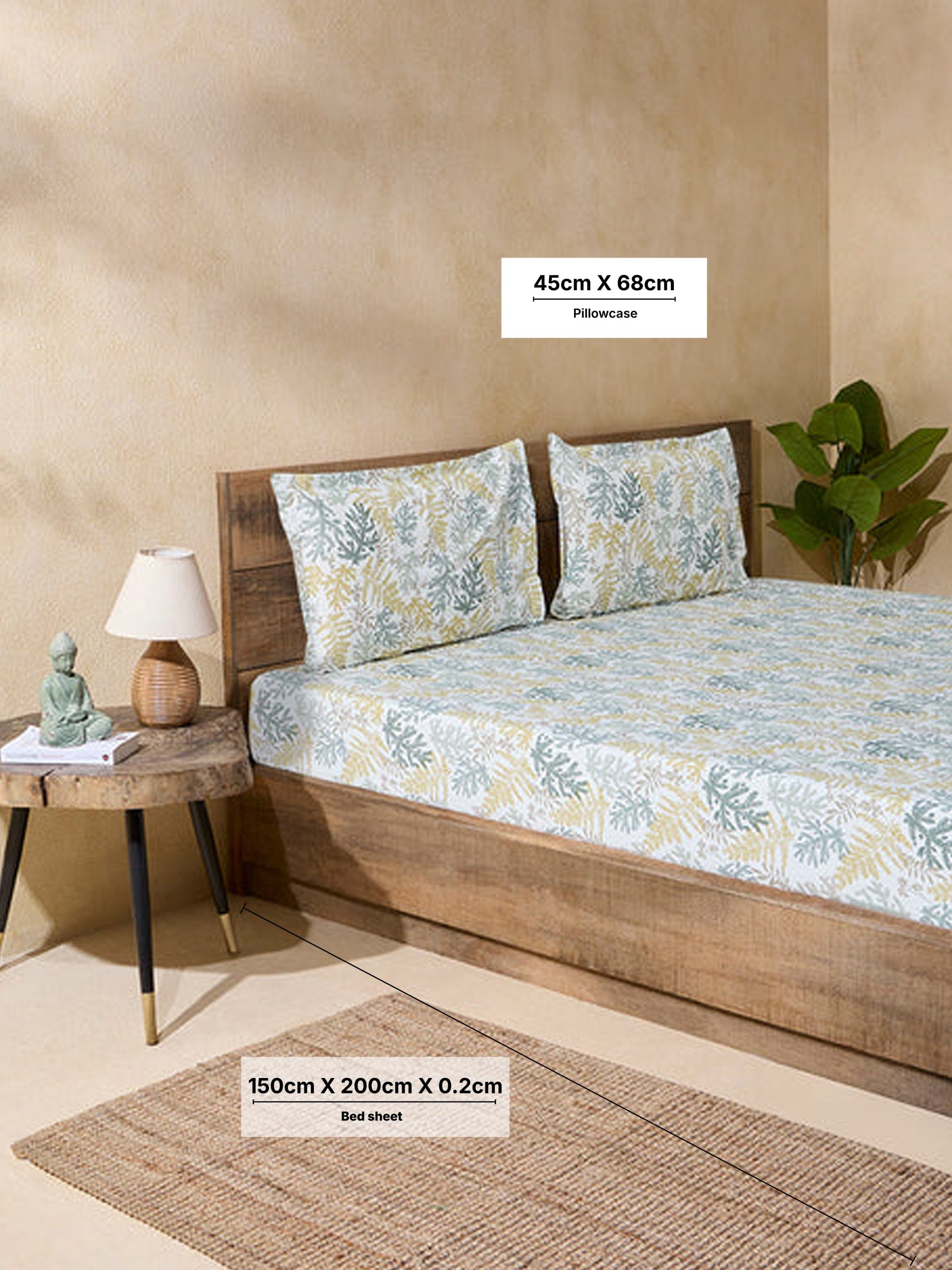 Westside Home Multicolour Foliage Pattern King Bed Fitted Sheet and Pillowcase Set
