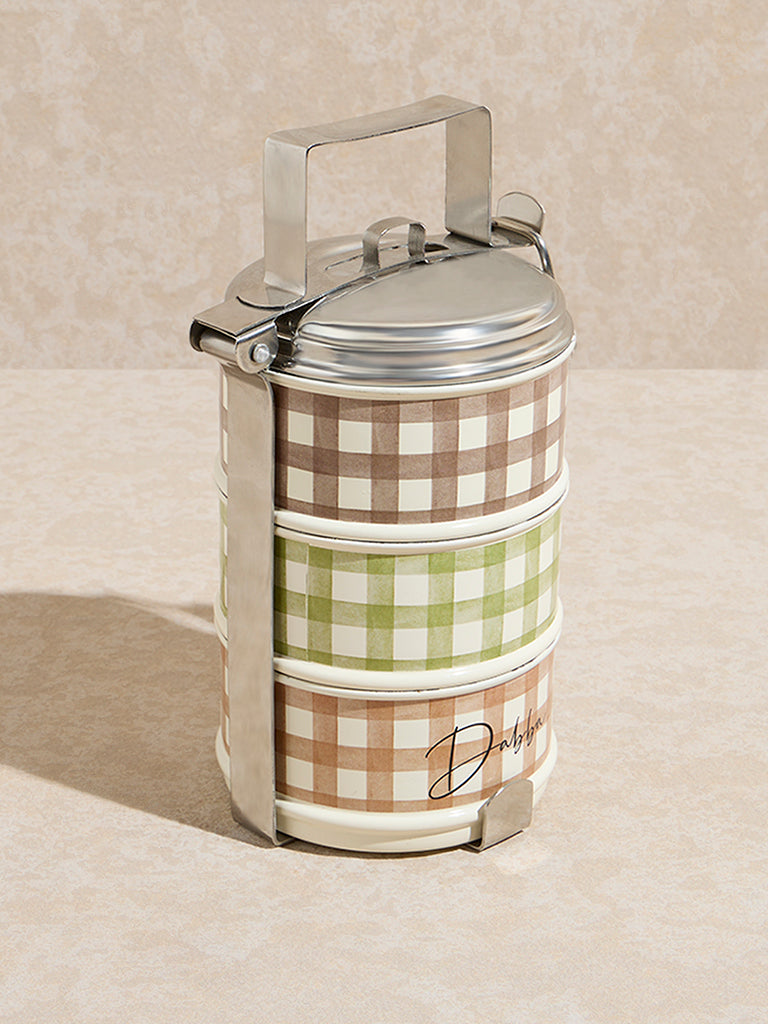 Three tiers of pure joy. stacked to please both the eye and appetite. With its vibrant gingham checks. this multicolour dabba box from Westside Home brings picnic-day nostalgia to your weekday lunch routine. Each tier locks in freshness. while the cheerful design turns even leftovers into a visual treat. Ideal for work. travel. or surprise snack attacks. it’s functional whimsy wrapped in retro flair. Who said storage can’t have personality?