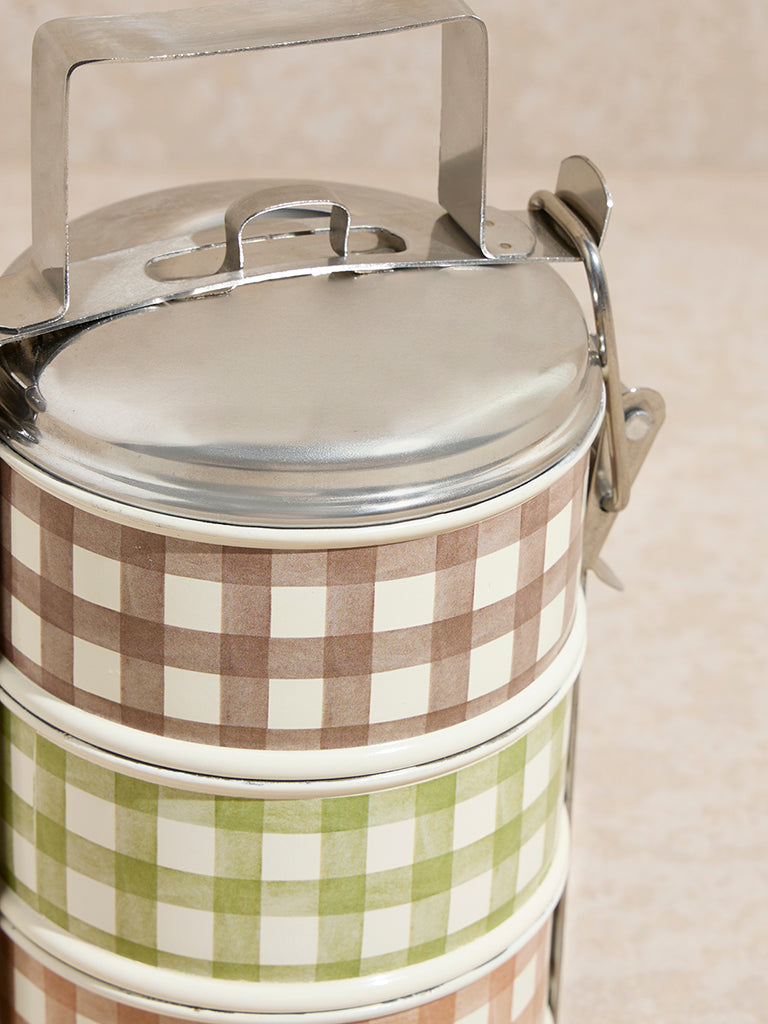 Westside Home Multicolour Gingham Checkered 3-Tier Dabba Box