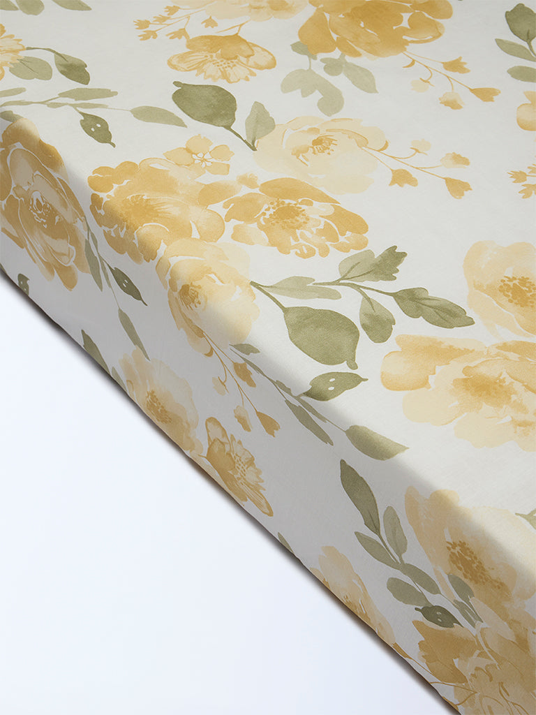 Westside Home Mustard Floral Pattern Queen Bed Sheet Set