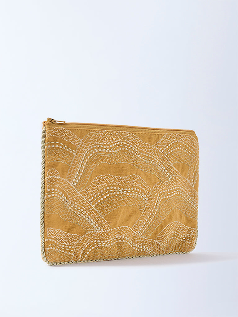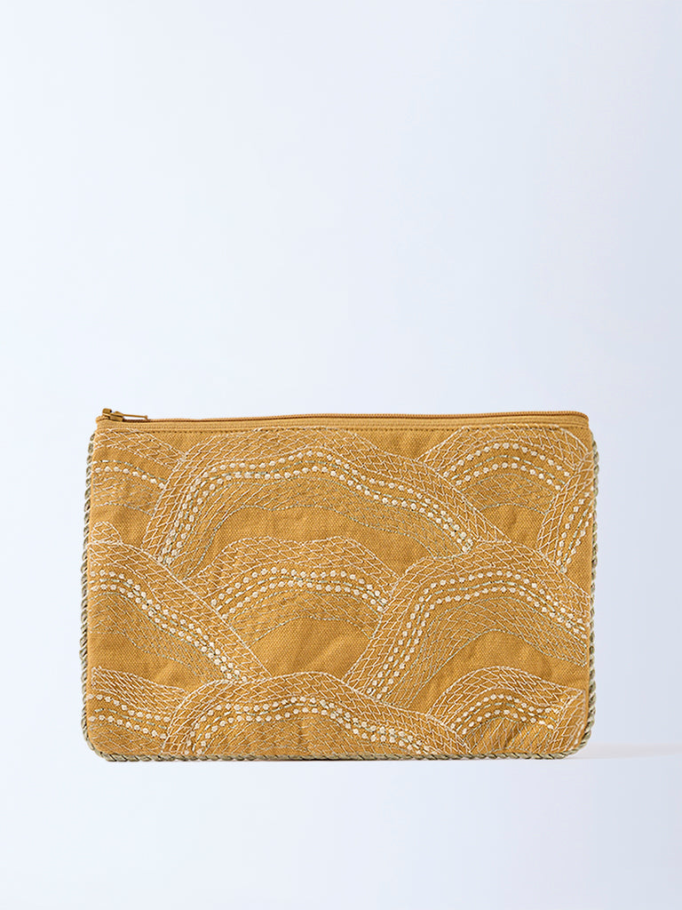 Westside Home Mustard Zari Shell Embroidered Pouch