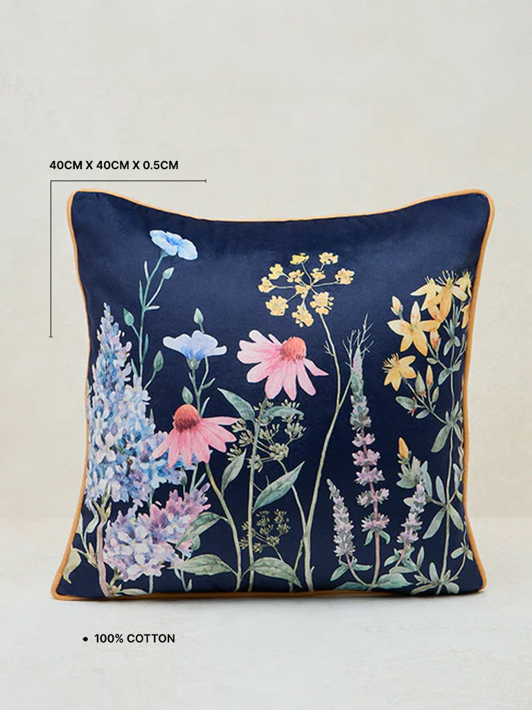 Transform your space with the tranquil beauty of this cushion cover from Westside Home. Featuring a graceful botanical motif against a rich navy background. this piece effortlessly blends modern style with natural inspiration. The intricate detailing adds character. while the bold color palette makes it a standout accent for sofas. beds. or armchairs. A chic addition for those who appreciate subtle elegance.