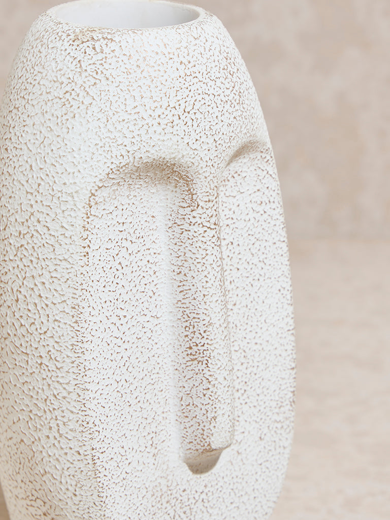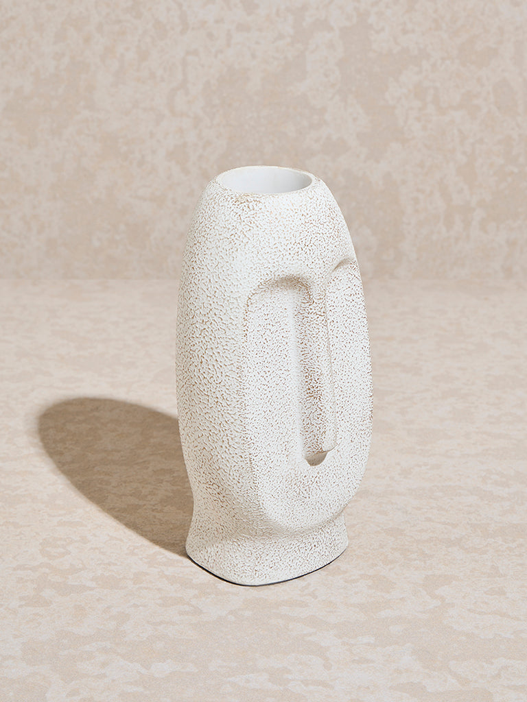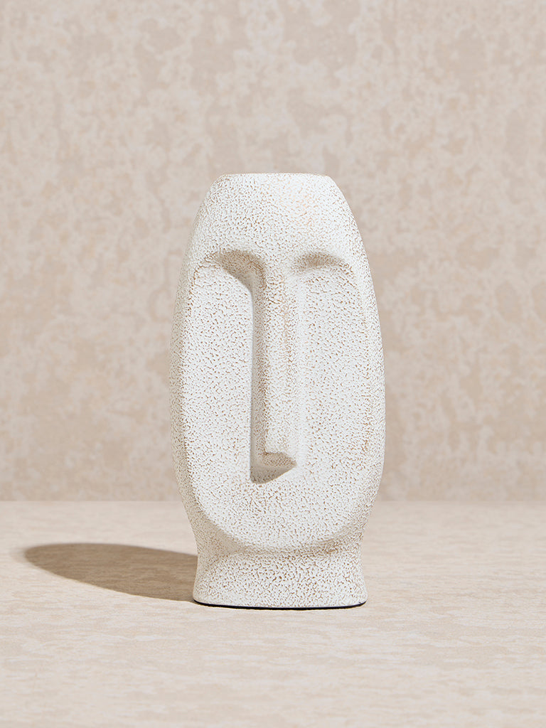 Add a touch of artistic allure to your decor with this textured face from Westside Home. This sculptural piece features an abstract face design. meticulously crafted with textured details that bring depth and character to any space. The subtle off-white hue complements various colour palettes. making it an ideal accent for contemporary or eclectic interiors. Whether displayed on a shelf. mantle. or side table. this unique object is sure to spark conversation and admiration.