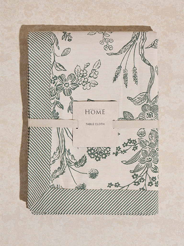 Anchor your dining space with this olive table cloth from Westside Home. where functionality meets timeless style. Crafted from smooth. easy-care fabric. it drapes effortlessly over your table. setting the stage for everything from casual breakfasts to elegant dinners. The intricate floral pattern adds a vintage-inspired charm. while the earthy olive tones keep it modern and versatile. Whether styled with complementary placemats or left as the hero of your tablescape. this tablecloth transforms any dining experience into a picture of effortless sophistication.