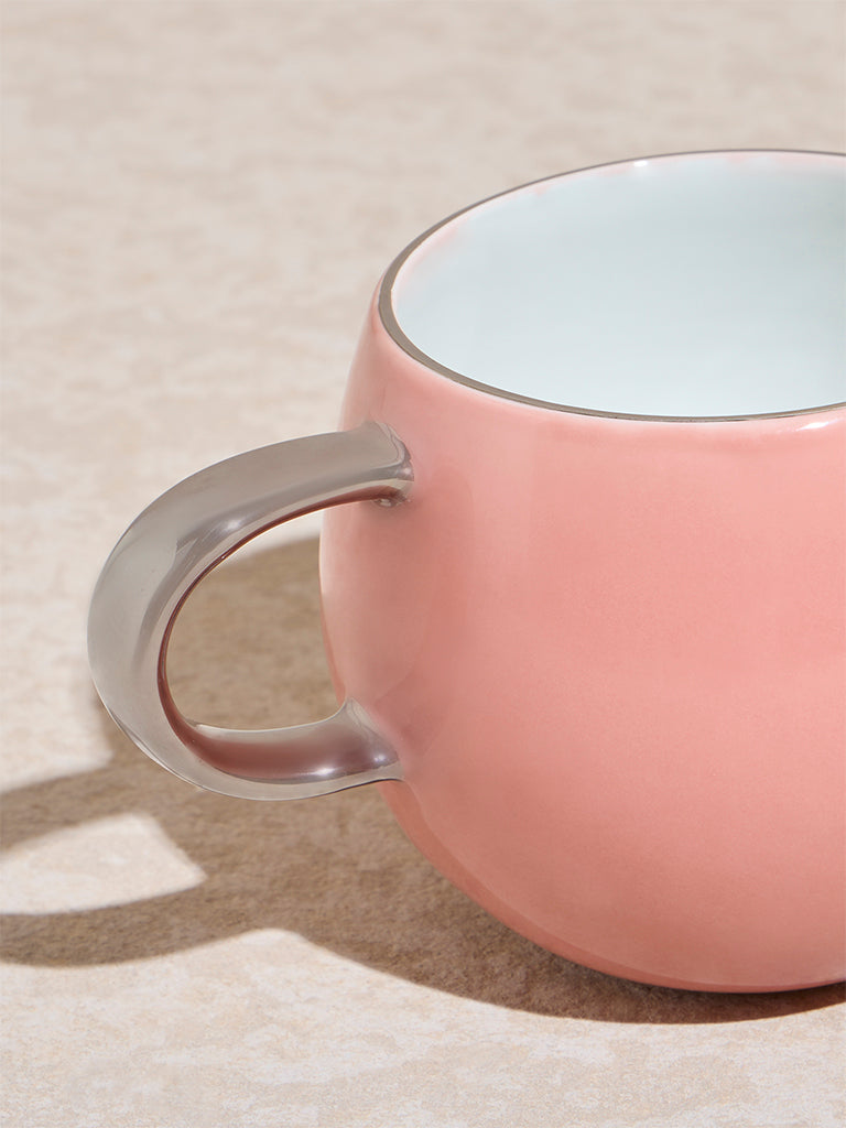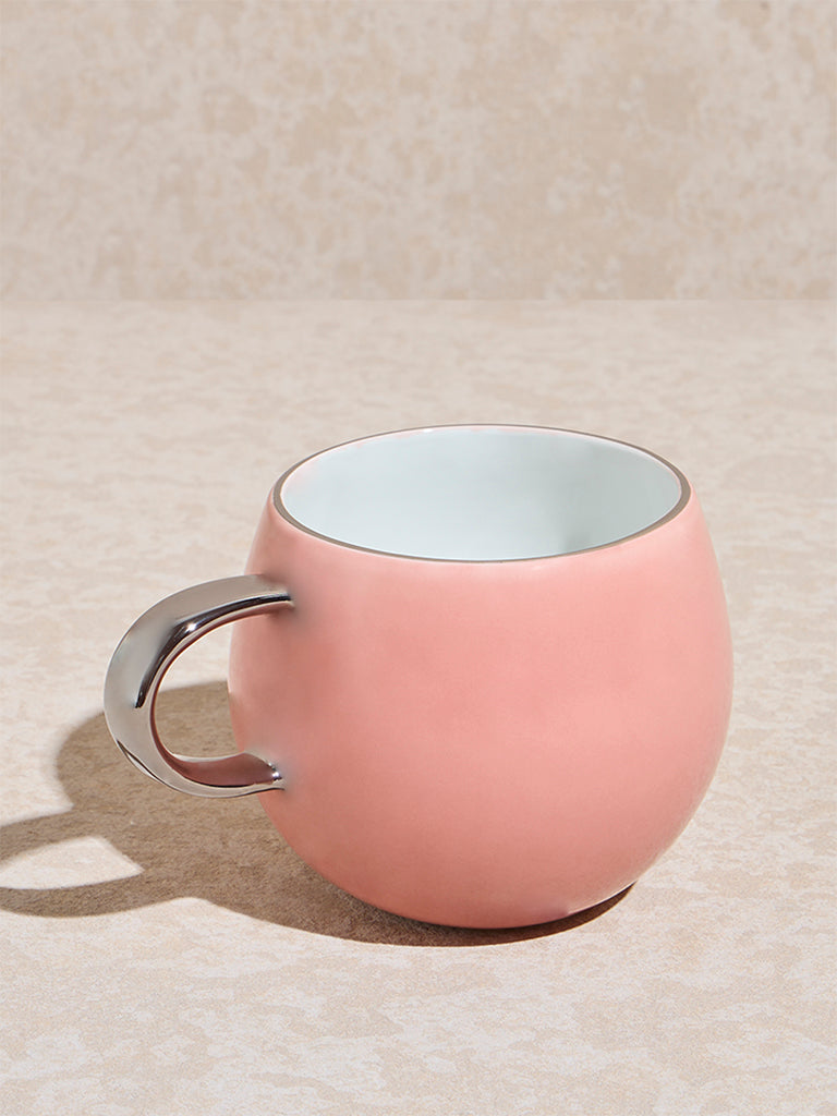 Westside Home launches this pink hug mug offering a cozy and stylish way to enjoy your favourite beverages. Featuring a round. bulging design. this mug is perfect for holding and cradling your drinks in comfort. Made from durable porcelain. it boasts an attached silver handle that adds a modern touch. Dishwasher safe for easy maintenance. this mug combines both functionality and charm. making it a delightful addition to your daily routine or a thoughtful gift for loved ones.