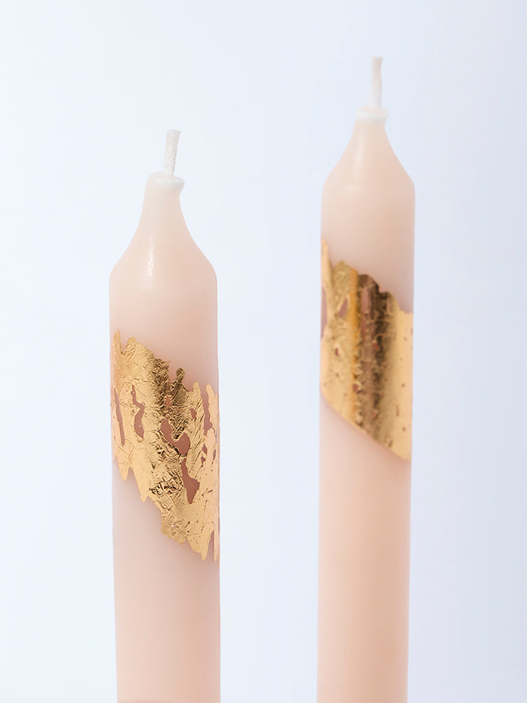 Add a romantic glow to your space with this set of two pink tapered candles from Westside Home. Embellished with elegant foil detailing. they shimmer softly when lit. creating an inviting. festive mood. The gentle pink shade works beautifully for celebrations. cosy dinners. or everyday d??cor. offering a blend of charm and sophistication. A simple way to elevate your table setting or gift something special.
