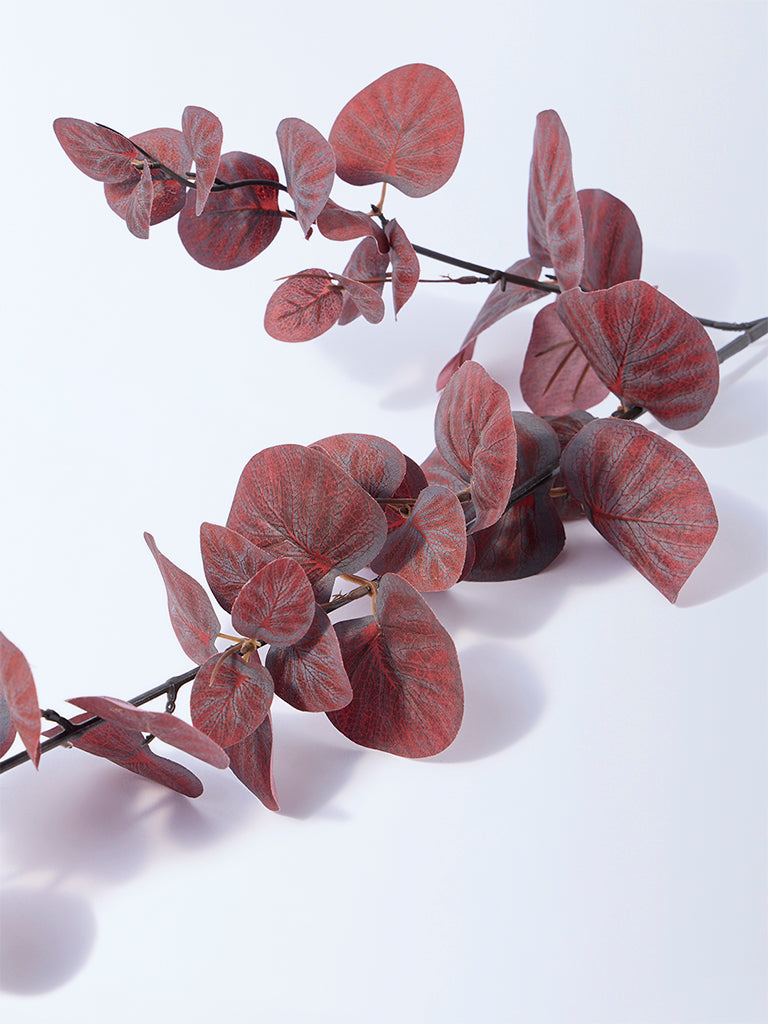 Modern minimalism meets rich colour in this red artificial eucalyptus leaf plant from Westside Home. Its sculptural stems. painted in a deep crimson hue. make a striking contrast against neutral interiors while adding sophistication to festive settings. Effortlessly dramatic. it is perfect for tall vases. console styling. or entryway decor. Low-maintenance yet high on style. it is a piece that brings the calm geometry of eucalyptus leaves into a bolder. more contemporary expression.
