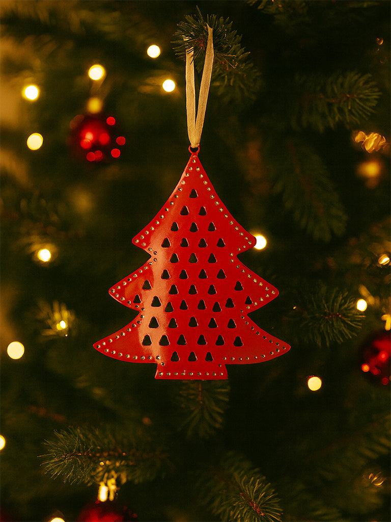 Bring bold. festive charm to your decor with this red metal Christmas tree hanging from Westside Home. Its vibrant hue and clean silhouette capture the playful essence of the season while adding a pop of colour to your tree. Lightweight and durable. it’s perfect for mixing with metallics or classic ornaments.