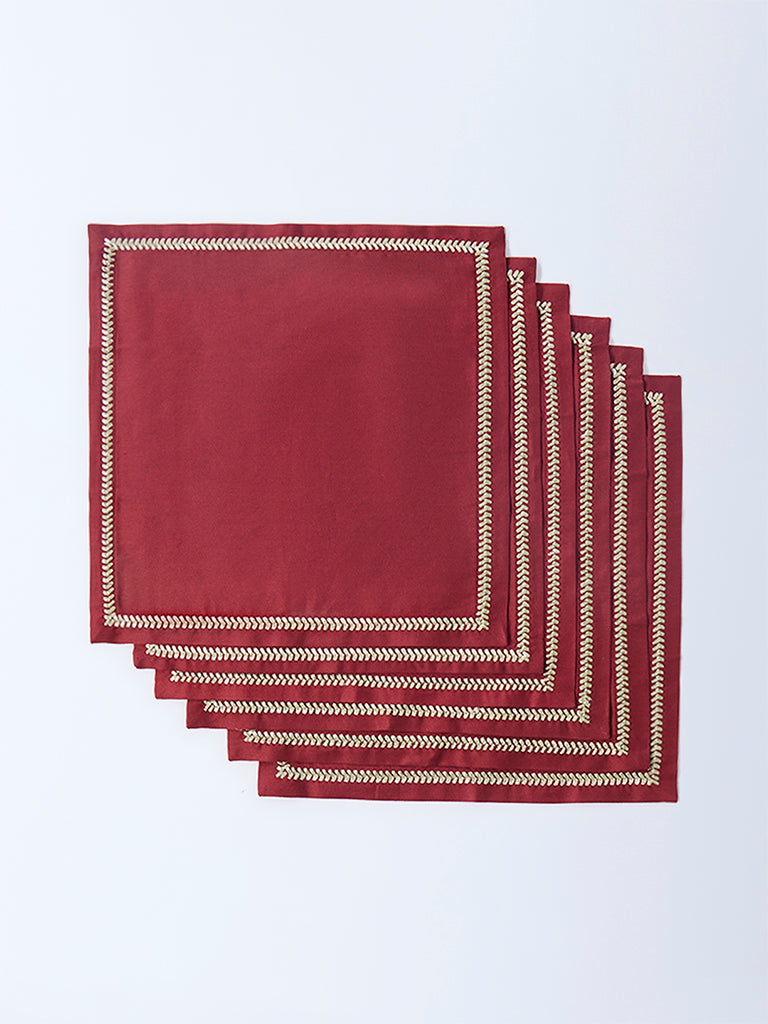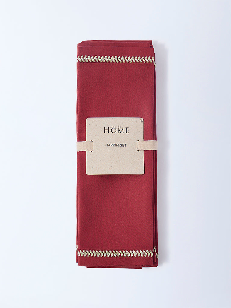 Complete your dining setup with this set of four red satin napkins by Westside Home. Soft to the touch and rich in tone. they bring a sense of occasion to both everyday meals and festive gatherings. Their smooth. lustrous texture pairs effortlessly with coordinating table runners and placemats. creating a cohesive and elegant dining experience. Whether folded simply or styled elaborately. these napkins add refinement and warmth. making every table setting feel polished and memorable.