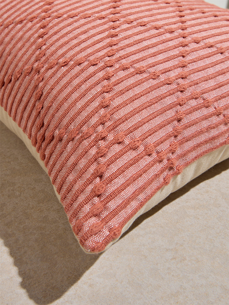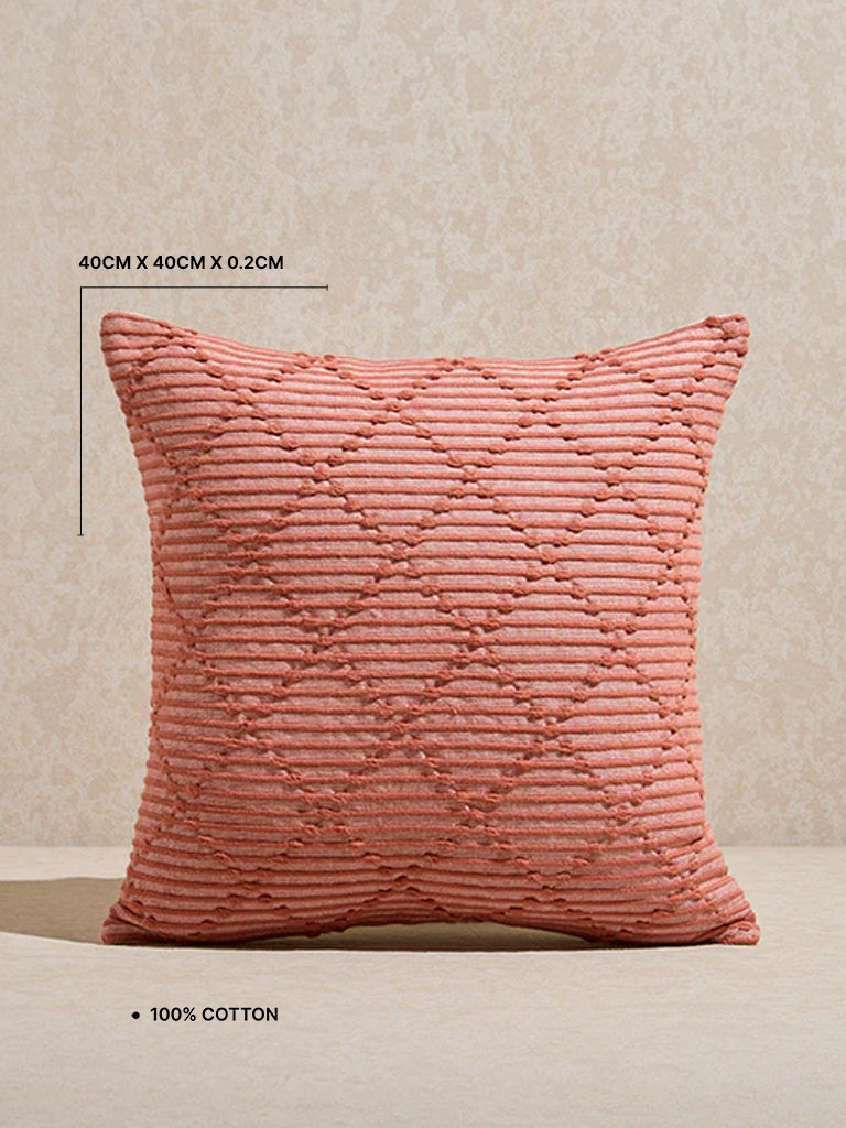 Infuse your space with a bold splash of colour and form using this rust-hued cushion cover from Westside Home. Defined by its striking geometric design. it brings an artistic. contemporary edge to your d??cor while maintaining a warm. inviting tone. The richly pigmented fabric is soft to the touch and durable enough for daily lounging. Perfect for adding personality to a neutral sofa or enhancing an already vibrant setting. it’s a modern accent that draws the eye.