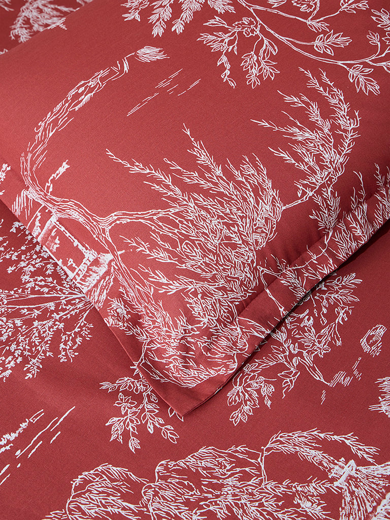 Embrace a classic. cozy feel with this Queen bed fitted sheet and pillowcase set from Westside Home. Featuring an intricate toile design in warm rust hues. this set brings a timeless charm and a sophisticated touch to your bedroom. The fitted sheet offers a snug. wrinkle-free fit. while the soft. breathable fabric ensures a night of ultimate comfort. Perfect for those who adore vintage-inspired aesthetics. this set effortlessly blends tradition with modern style. transforming your bed into a serene retreat.