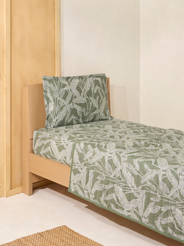 Westside Home Sage Foliage Print Reversible Quilted Single Bed Comforter