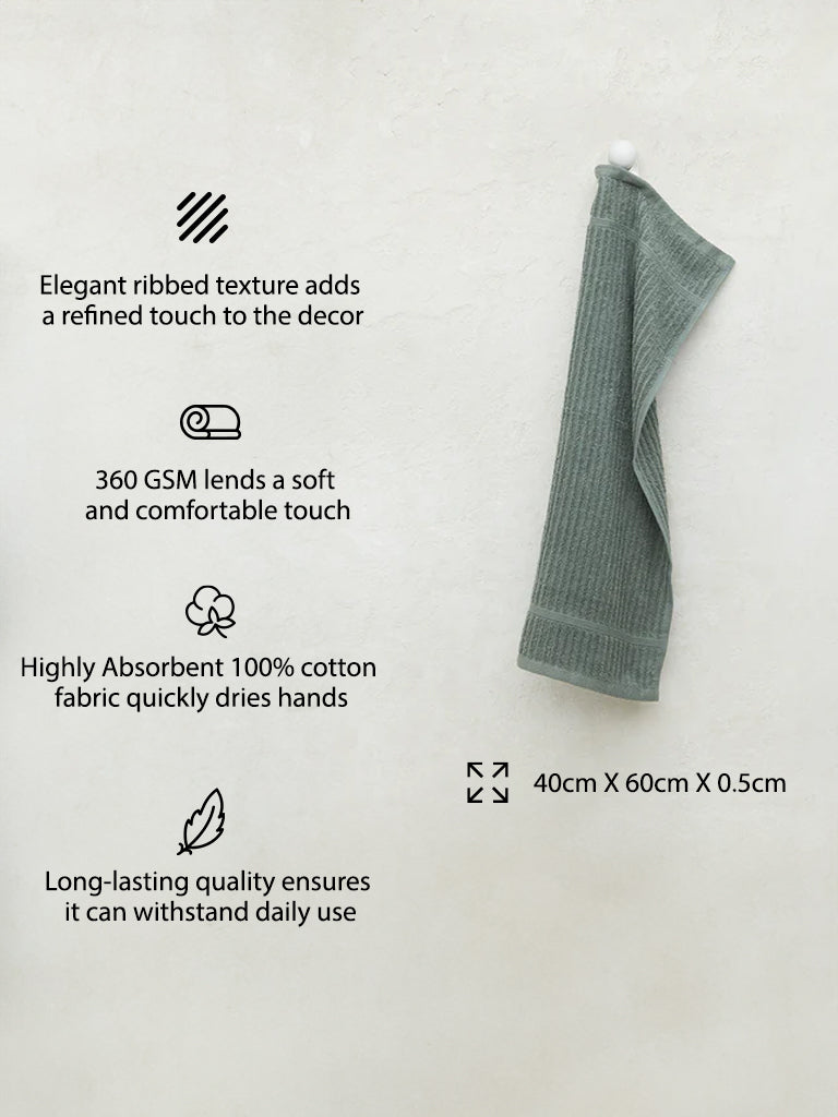 Ideal for those who value both function and design. this hand towel from Westside Home seamlessly blends into your routine and decor. It features a soothing sage green color that adds a subtle. stylish touch to any bathroom or kitchen. Made from highly absorbent. plush fabric. it offers both comfort and practicality. Its durable construction ensures it stands up to daily use. while the elegant color and texture enhance your space with a refined. practical touch.