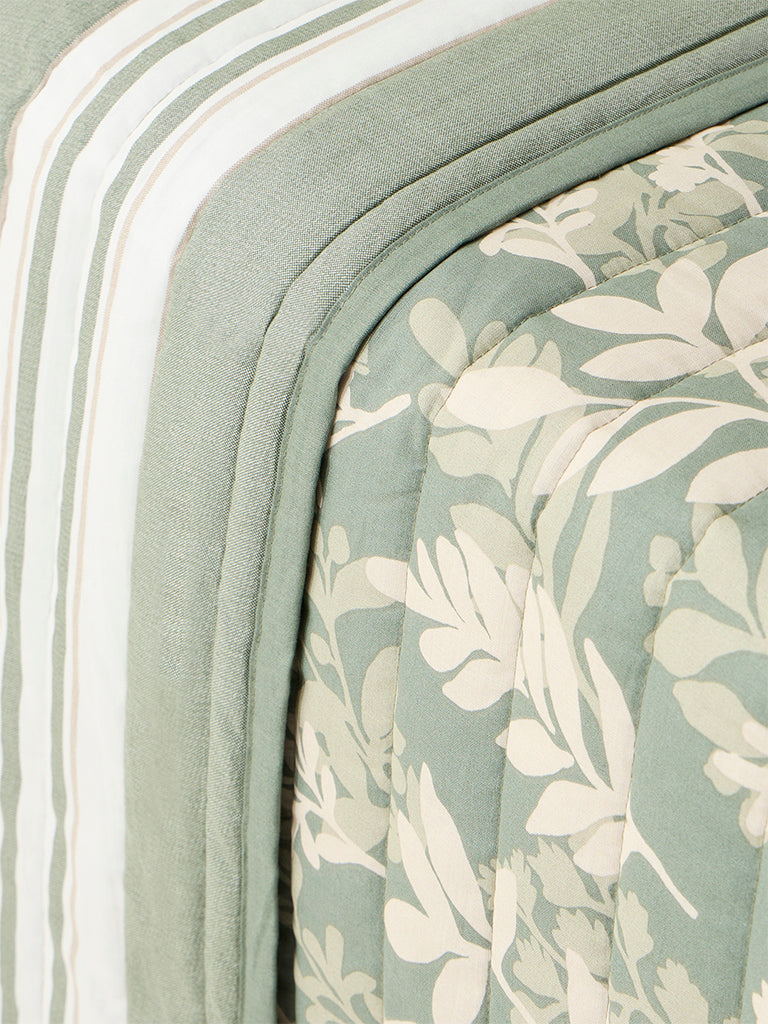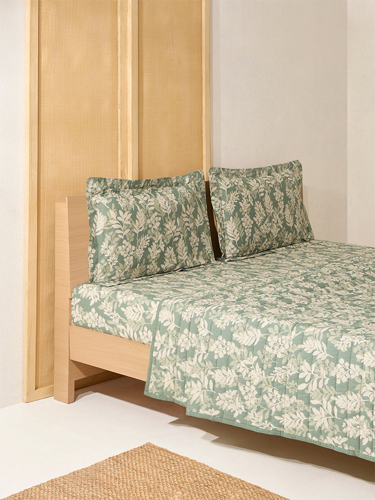 Westside Home Sage Leaf Design Reversible Quilted Queen Bed Comforter