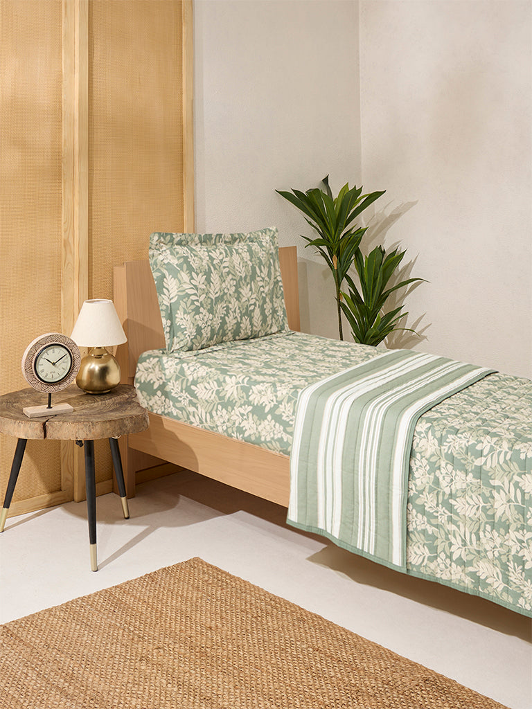 Westside Home Sage Leaf Design Reversible Quilted Single Bed Comforter
