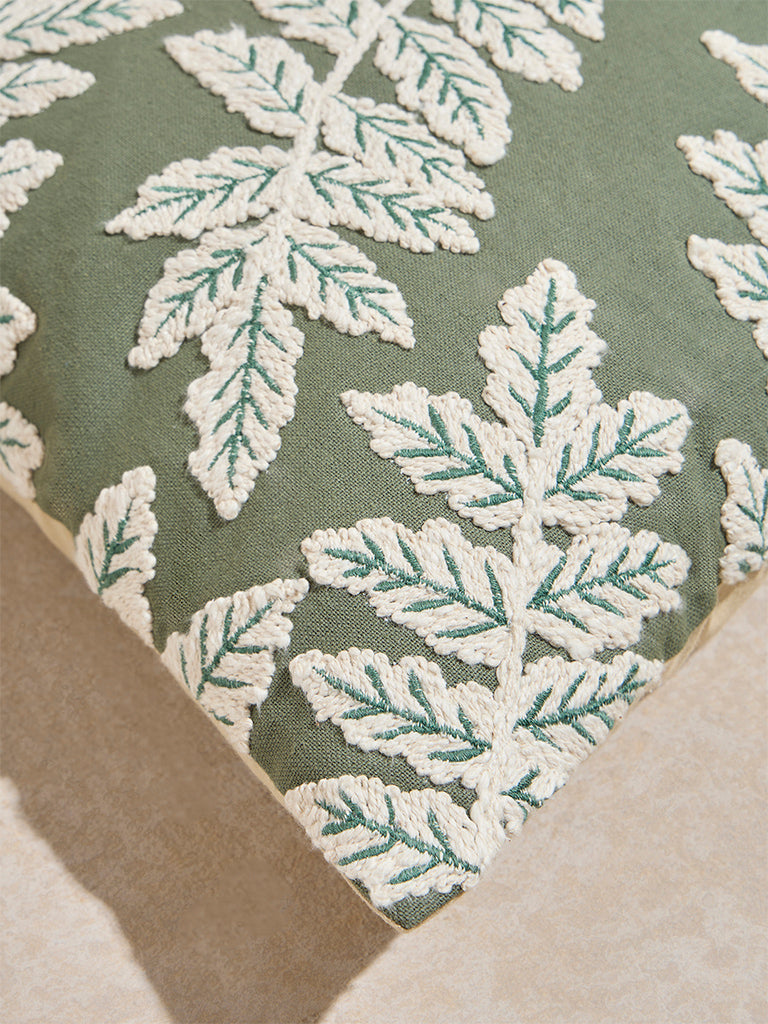 Westside Home Sage Leaf Embroidered Cushion Cover