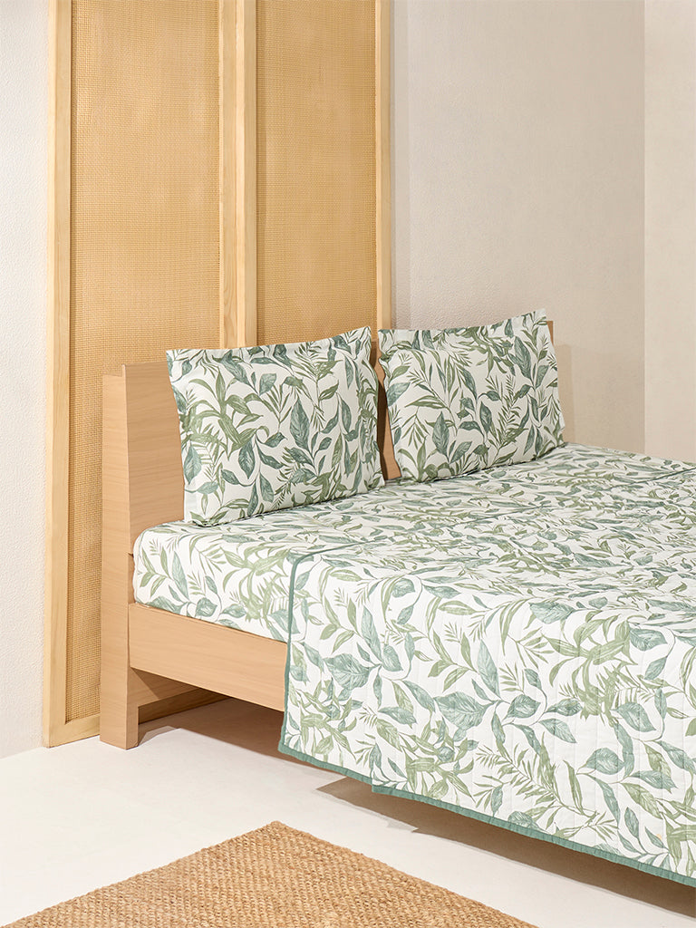Westside Home Sage Leaf Pattern Queen Bed Reversible Comforter