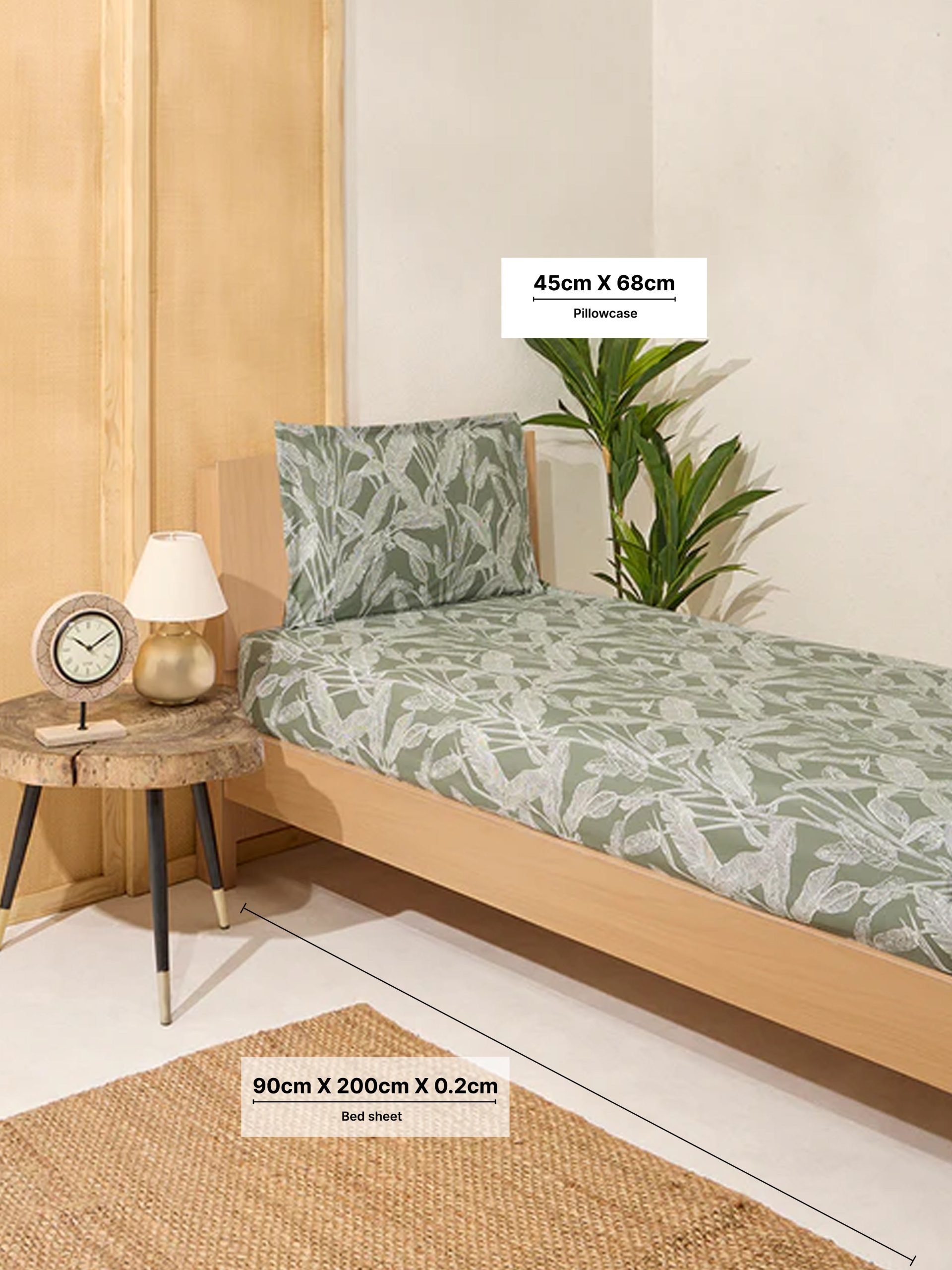 Transform your bedroom into a serene retreat with this single bed fitted sheet and pillowcase set from Westside Home. Crafted from soft. breathable fabric. this set promises comfort and a touch of nature-inspired elegance. The subtle sage green hues and delicate leaf motifs bring a fresh. calming vibe to your space. while the elasticized fitted sheet ensures a snug fit for single beds. Whether you’re relaxing after a long day or starting your morning with ease. this set is the perfect way to elevate your bedroom’s charm and comfort.