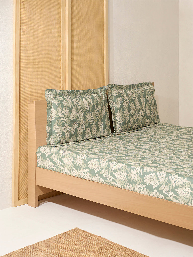Westside Home Sage Leaf Printed Queen Bed Sheet Set
