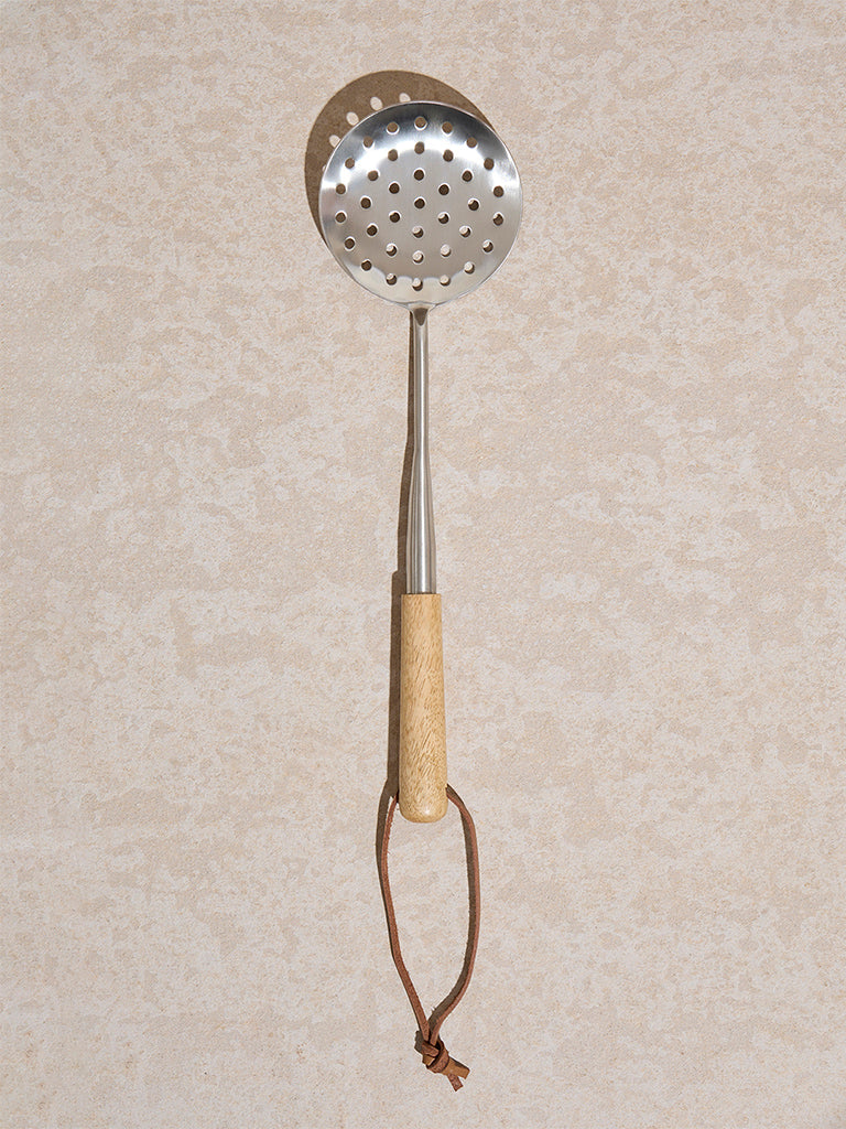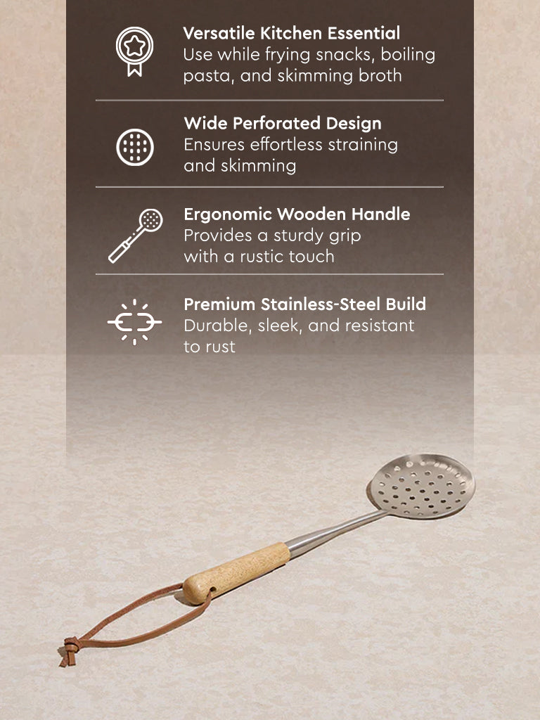 Where function meets finesse. this silver skimmer from Westside Home is a kitchen essential elevated by timeless design. Crafted from gleaming stainless steel with a wide perforated bowl. it’s built for precision??whether straining pasta. lifting fried delicacies. or skimming broths to perfection. The warm wooden handle offers a natural contrast. ensuring a comfortable grip while adding a rustic touch. Effortlessly blending utility with artisanal charm. this skimmer is more than just a tool??it’s a kitchen heirloom in the making. ready to serve up style with every dish.