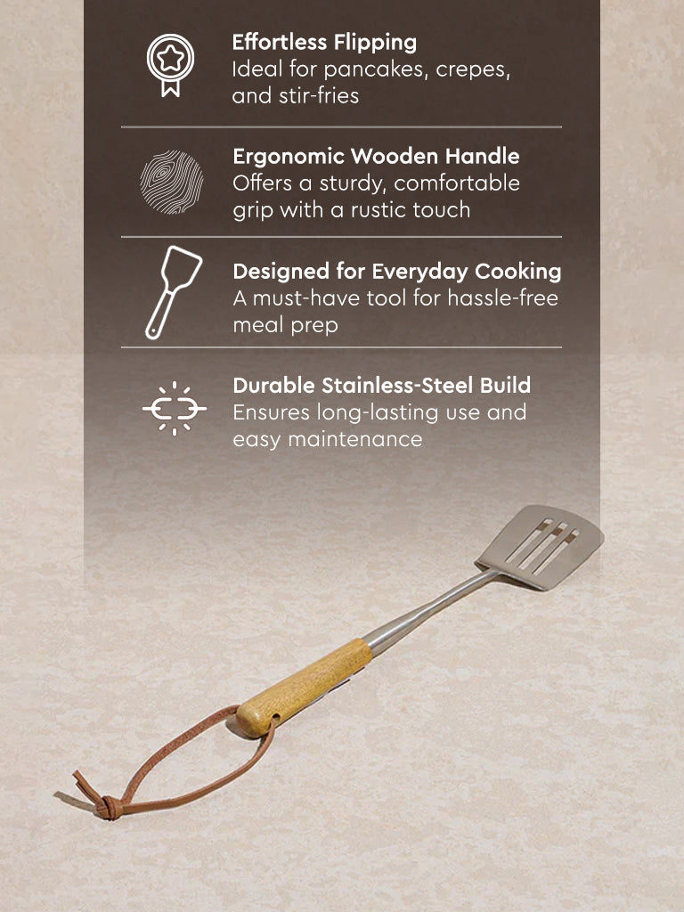 Designed for the modern kitchen yet inspired by timeless craftsmanship. this silver turner from Westside Home blends function with finesse. Its stainless-steel head glides effortlessly under delicate cr??pes. golden pancakes. or sizzling stir-fries. ensuring precision with every flip. The smooth wooden handle provides a sturdy. comfortable grip. adding a rustic warmth to its sleek metallic sheen. Whether you’re a seasoned chef or a weekend cook. this turner is an essential tool that balances durability with style??because even the simplest meals deserve a touch of elegance.
