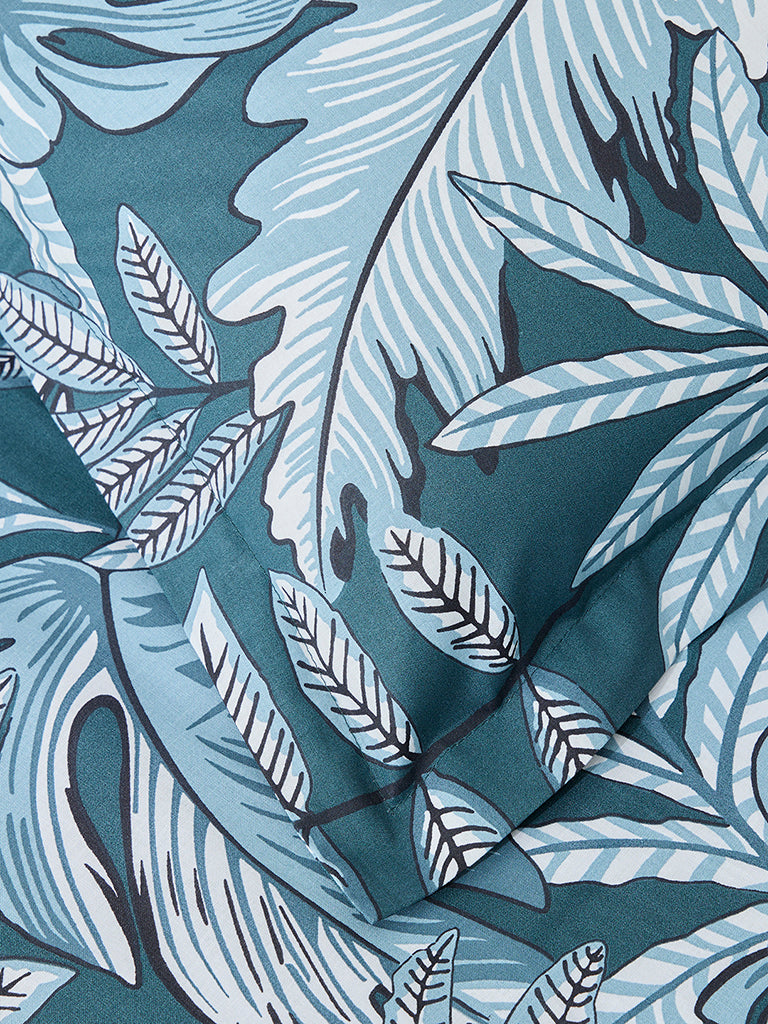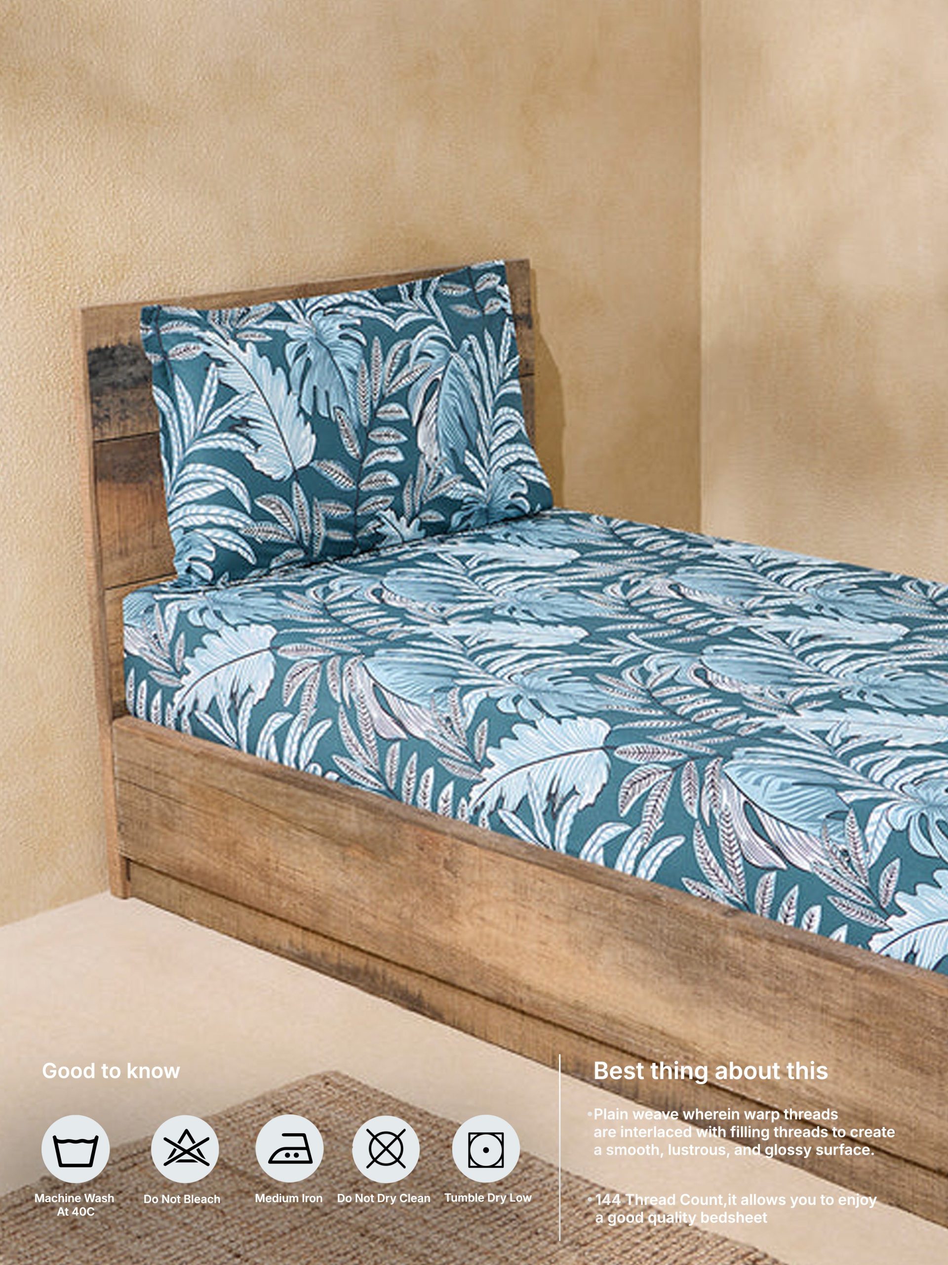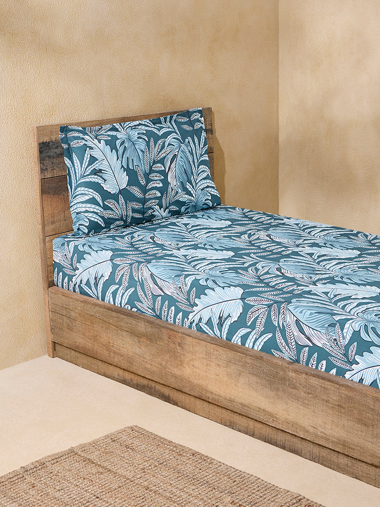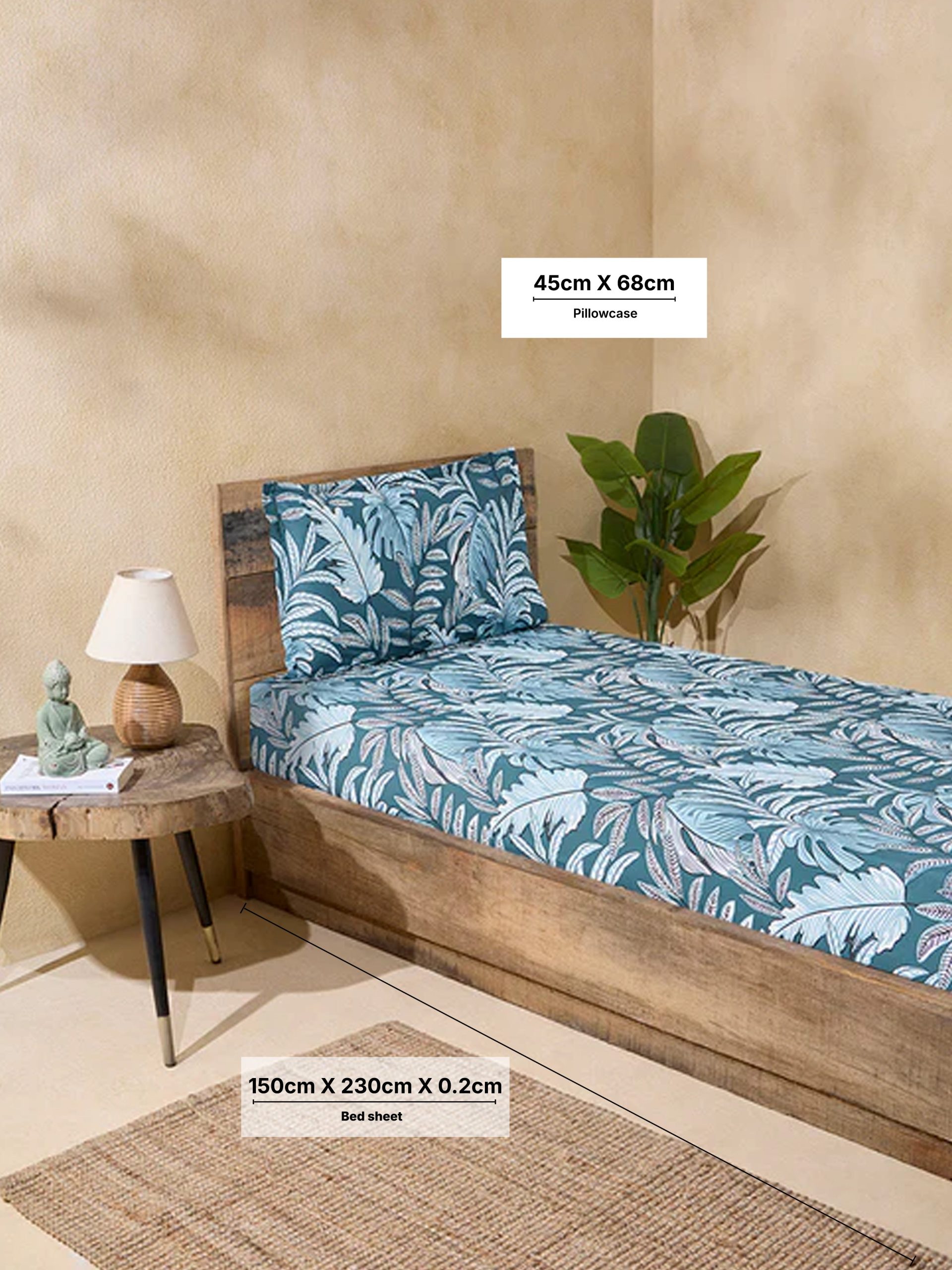 Westside Home Teal Leaf Design Single Bed Flat Sheet and Pillowcase Set