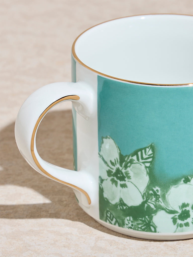 Add a splash of charm to your coffee breaks with this mug from Westside Home. Adorned with intricate floral patterns in a soothing turquoise hue. this ceramic mug brings elegance and freshness to your drinkware collection. Designed with a sturdy handle and a smooth. glossy finish. it ensures a comfortable grip and a delightful drinking experience. Perfect for morning coffee. afternoon tea. or cozy hot chocolate moments. this mug seamlessly blends style with everyday functionality.