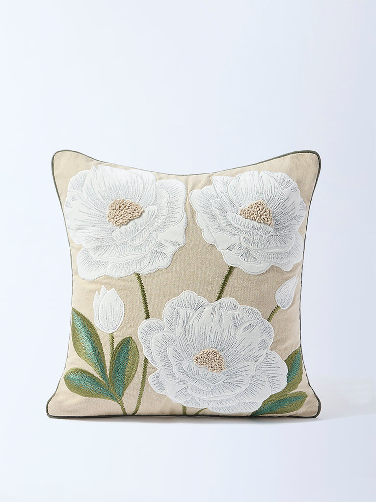 Westside Home White Floral Applique Detailed Cushion Cover