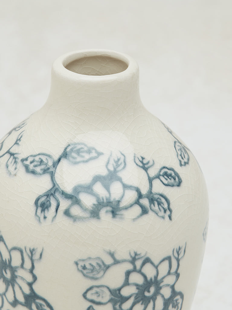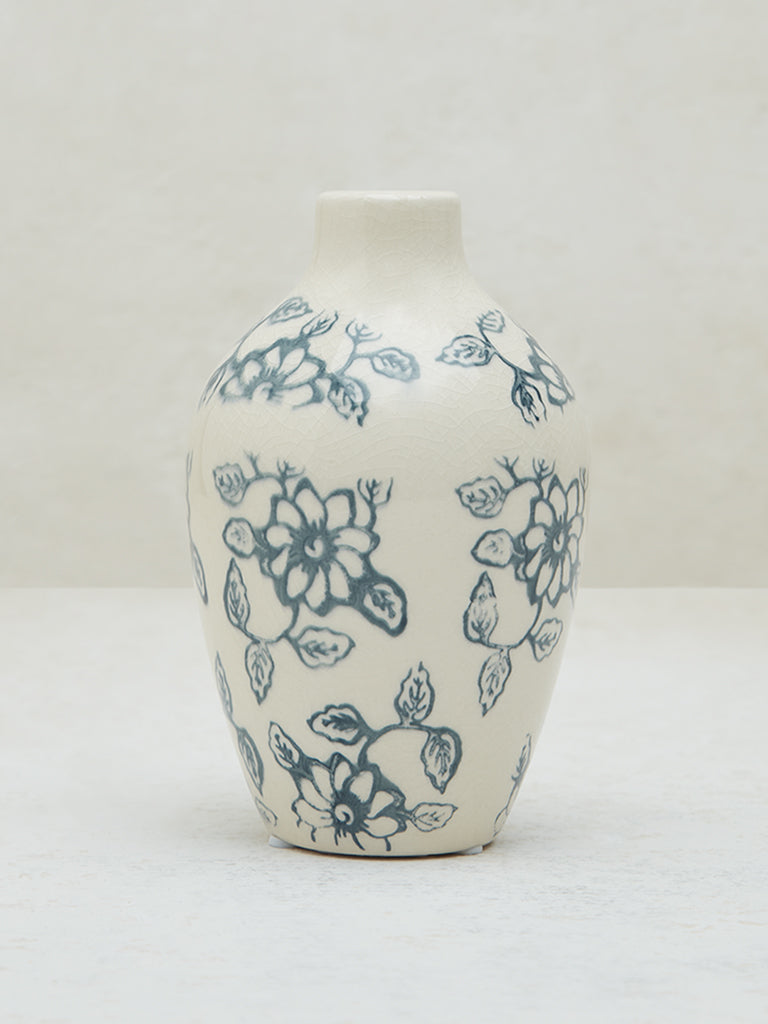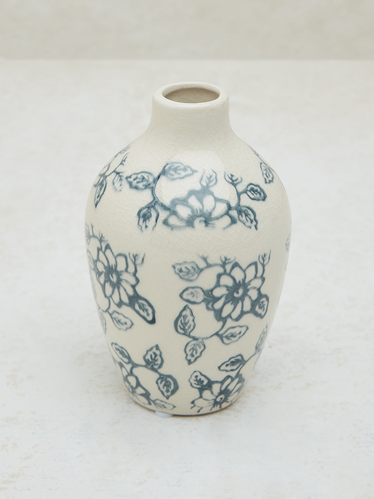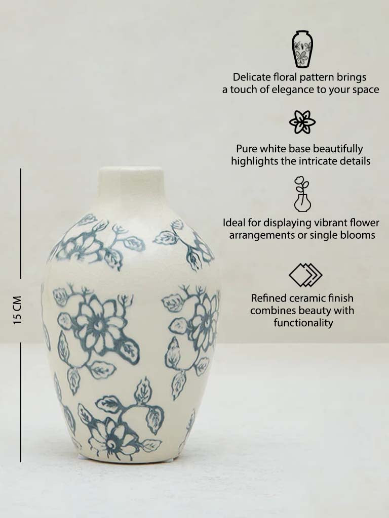 Revitalize your space with this white ceramic vase from Westside Home. This vase features an exquisite floral design against a crisp white backdrop. offering a refined touch to your interior. Ideal for displaying a bouquet of fresh flowers or a striking single stem. its elegant ceramic finish and intricate print make it a distinguished addition to any table or shelf. Perfect for enhancing both formal and casual settings. this vase brings a harmonious blend of artistry and practicality to your home d??cor.