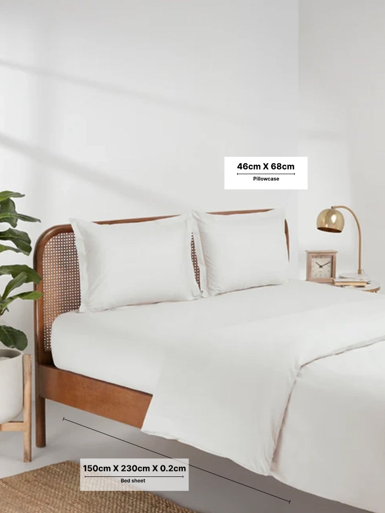 An understated design that will harmoniously complement both classic and contemporary decor schemes this white queen bedsheet set from Westside promises to be incredibly easy on the eye. Made using high quality 144-thread-count pure cotton for an exquisitely soft handle. this solid flat creation comes complete with matching pillowcases to help you inch one step closer to the sleep of your dreams.