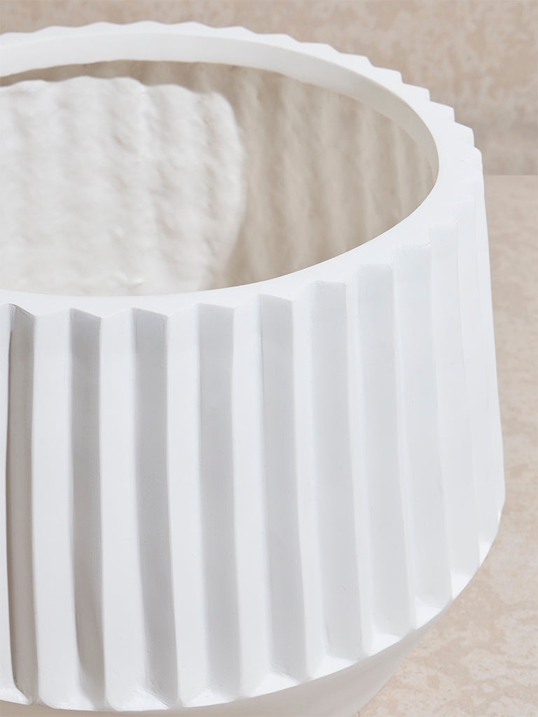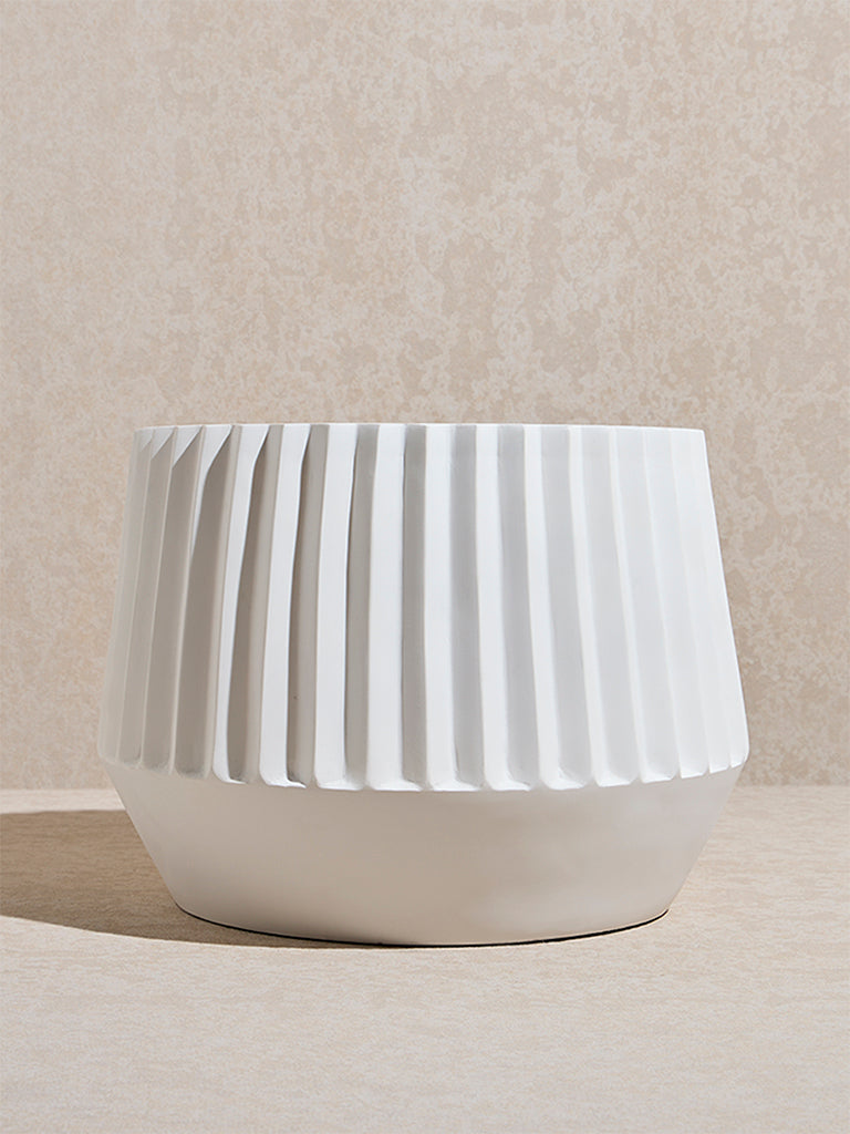 Give your botanical beauties a chic upgrade with this white ridge planter from Westside Home. Its textured ridged design adds depth and character. effortlessly blending with minimalist or modern decor. Crafted for durability. it securely cradles your favorite plants while maintaining a clean. elegant look. Perfect for statement indoor foliage or cascading greens. its spacious design allows room for roots to thrive. Bring freshness and style to your living space with this timeless planter that balances form and function.