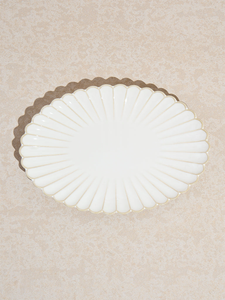 This large white serving platter from Westside Home is designed to impress without trying too hard. With softly scalloped edges and a matte ceramic finish. it’s the kind of serve ware that frames your dishes like art. Ideal for everything from hors d’oeuvres to roasts. this platter strikes the right note between understated elegance and everyday practicality. It doesn’t scream for attention??it earns it. with quiet craftsmanship and effortless versatility.